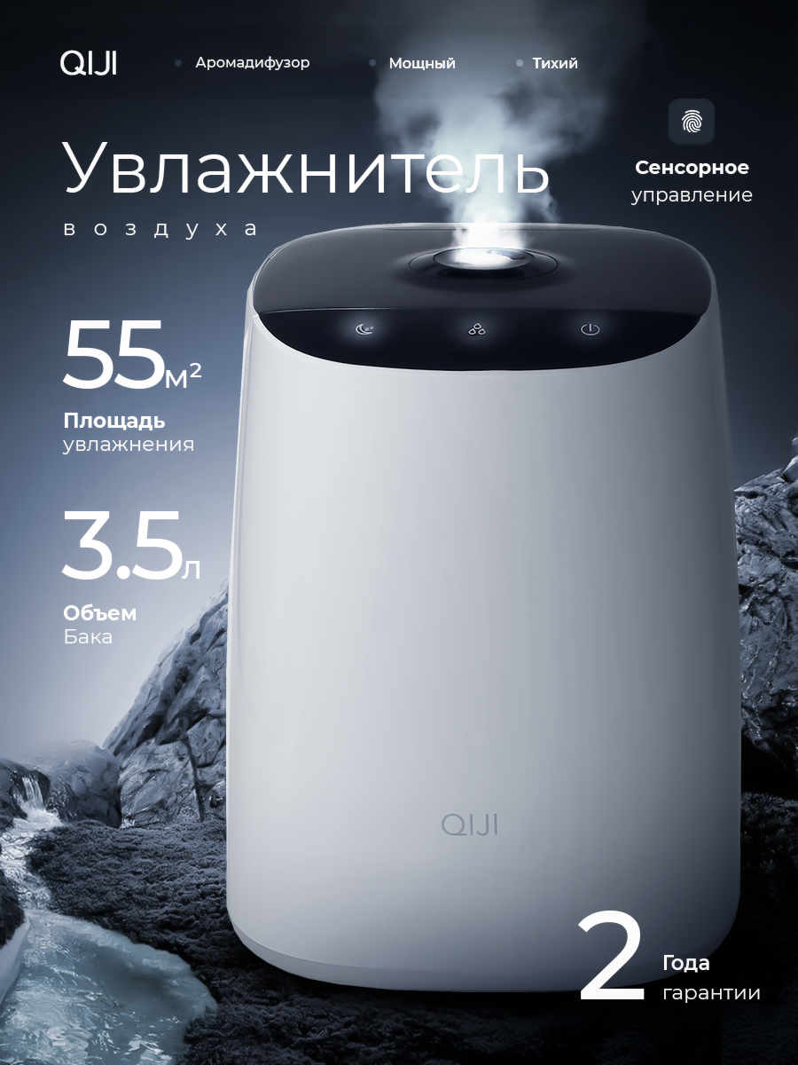 Увлажнитель воздуха QIJI, ультразвуковой, для площади 55м², резервуар 3.5л информация: