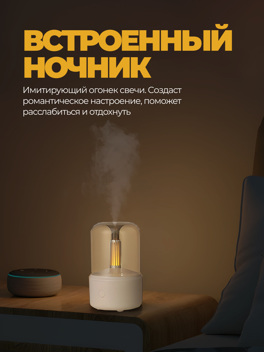 Увлажнитель воздуха и аромадиффузор с подсветкой для дома, ночник с эффектом пламяни