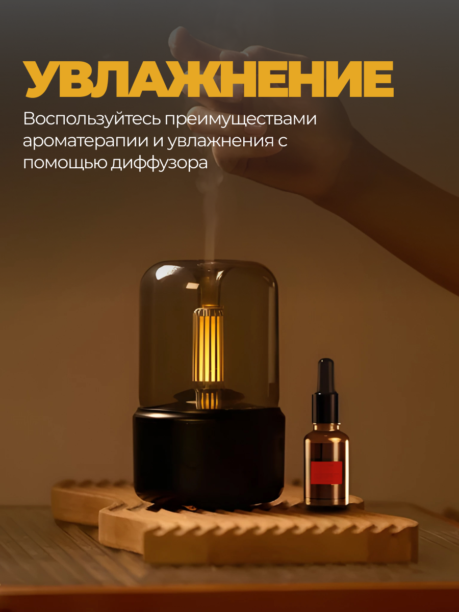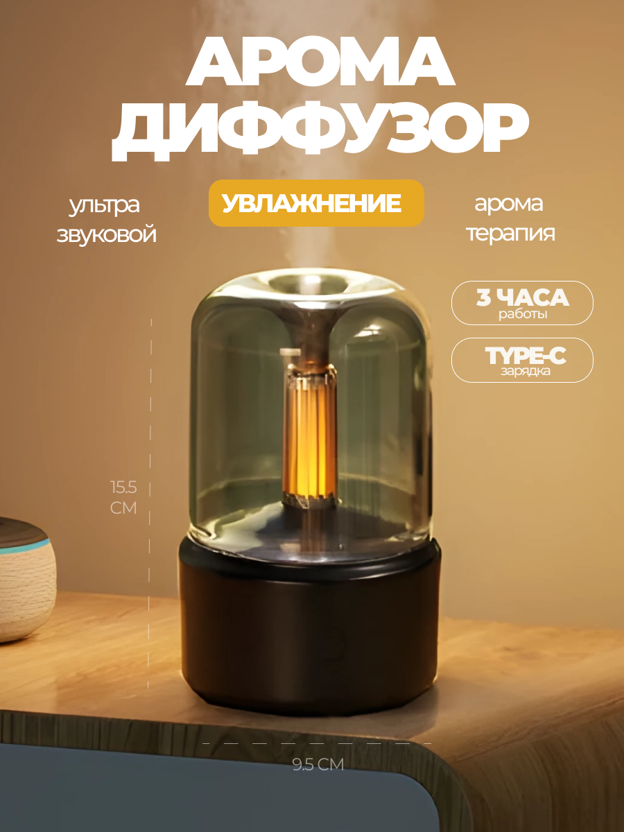 Увлажнитель воздуха и аромадиффузор с подсветкой для дома, ночник с эффектом пламяни