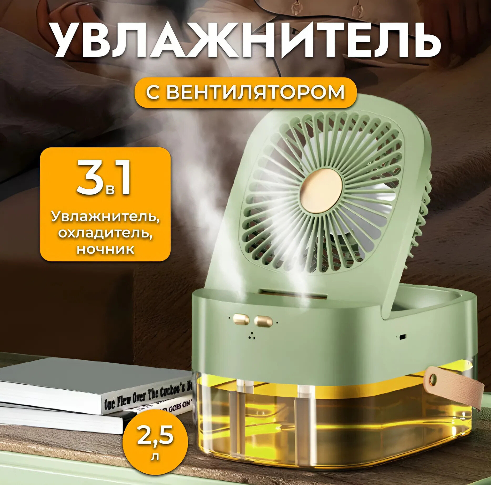 Отзывы на Портативный мини вентилятор-кондиционер, увлажнитель, очиститель и охладитель воздуха 3в1, зеленый