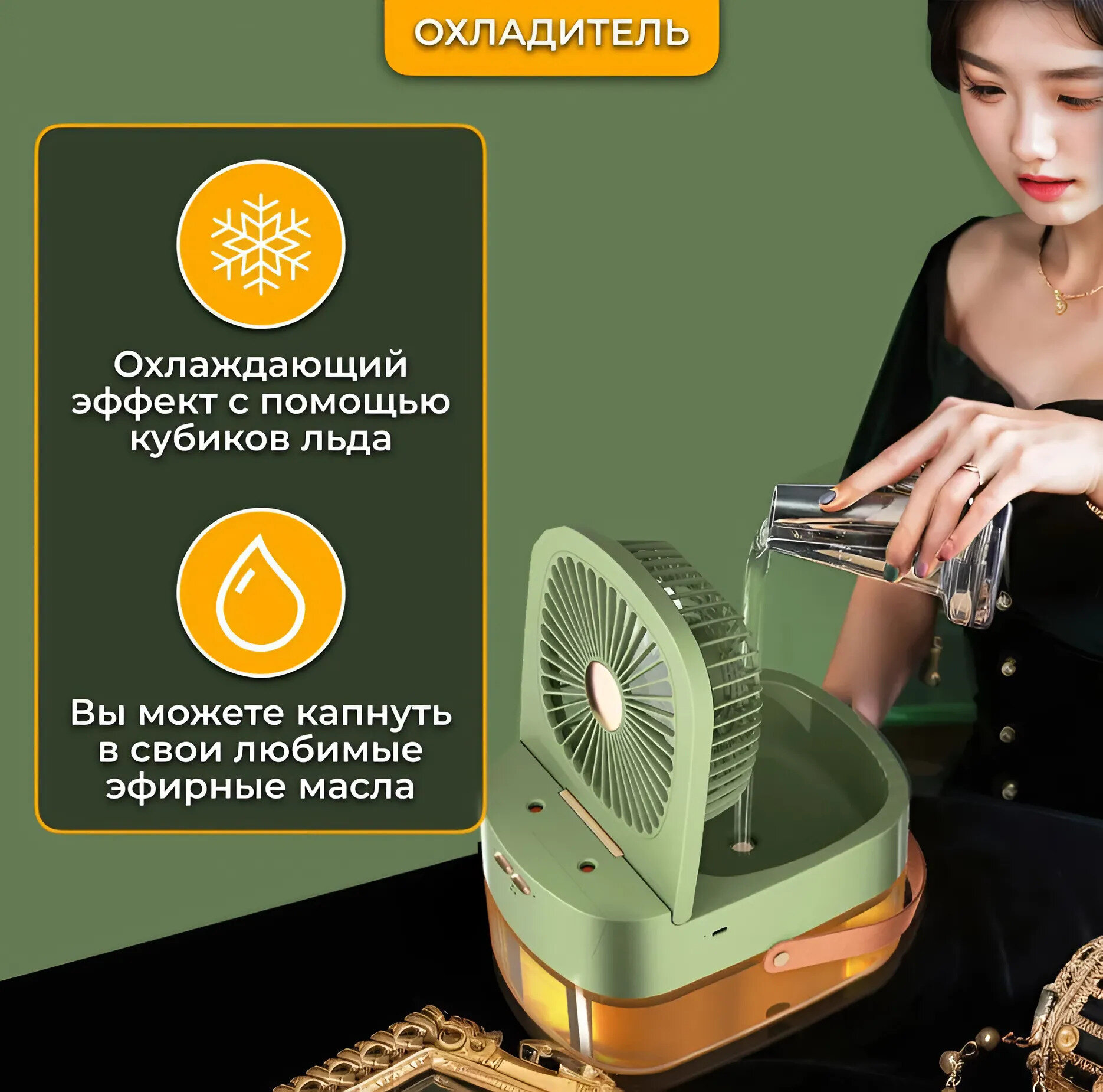 Портативный мини вентилятор-кондиционер, увлажнитель, очиститель и охладитель воздуха 3в1, зеленый информация: