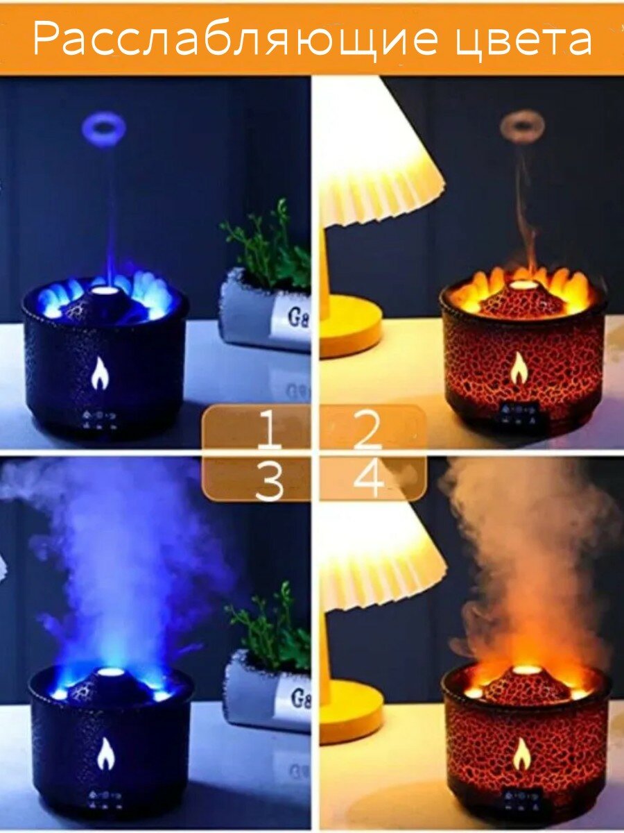 Увлажнитель воздуха для дома настольный и напольный, ультразвуковой, портативный с подсветкой. Аромадиффузор для эфирных масел, с эффектом дыма Вулкан информация: