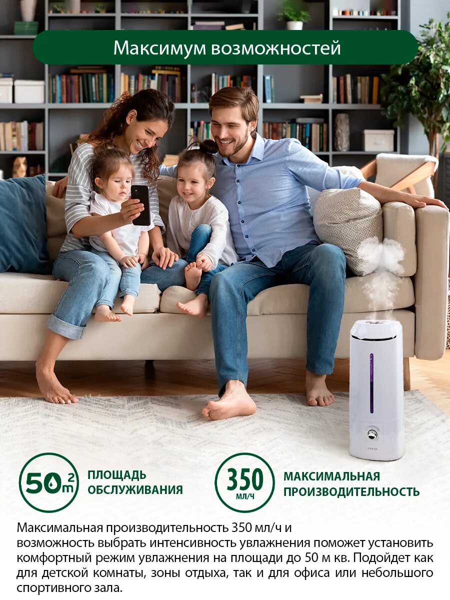 Увлажнитель воздуха ультразвуковой MARTA MT-HF4706A антивирусная УФ - лампа черный 1 134 ₽