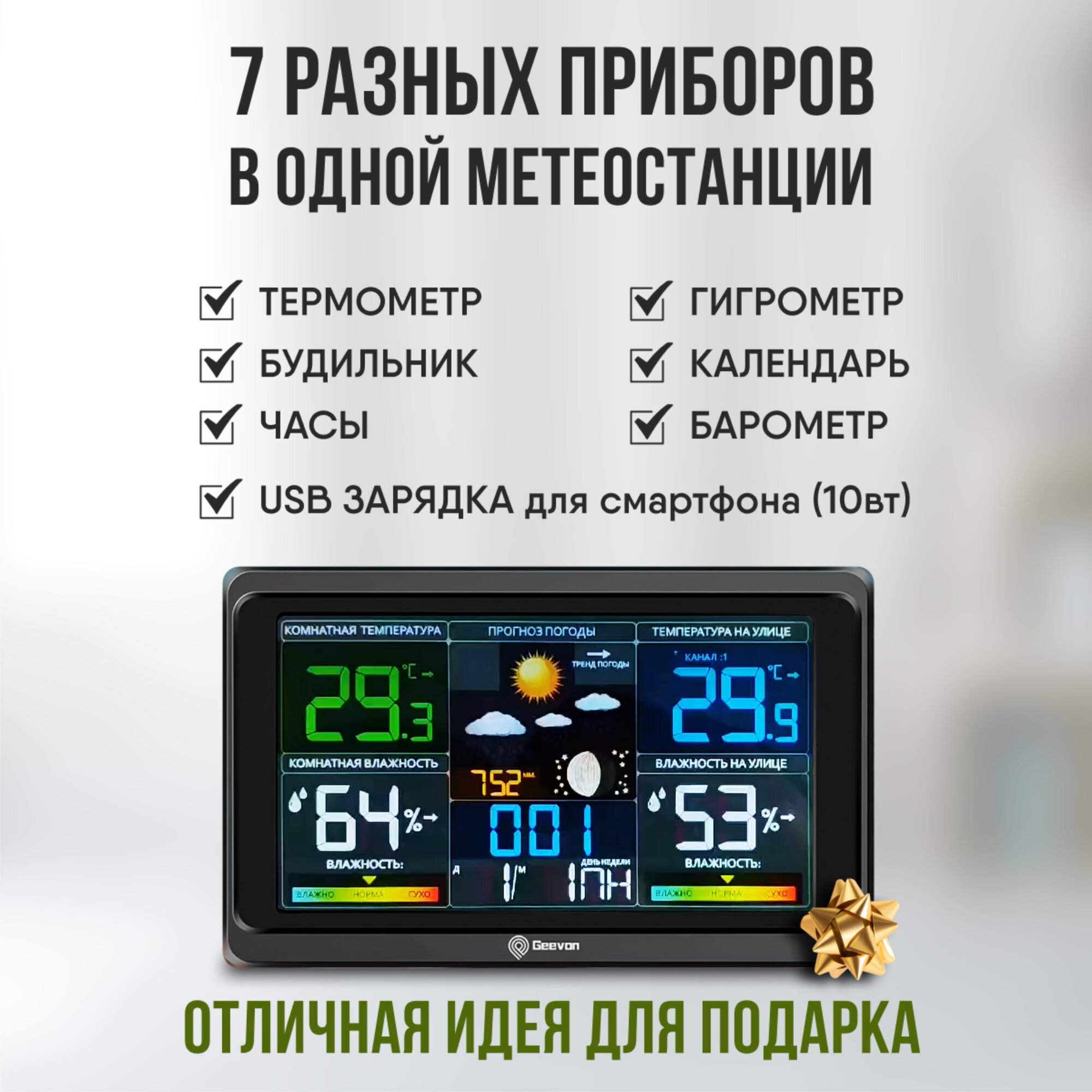 Метеостанция GEEVON, с беспроводным выносным датчиком, для дома информация: