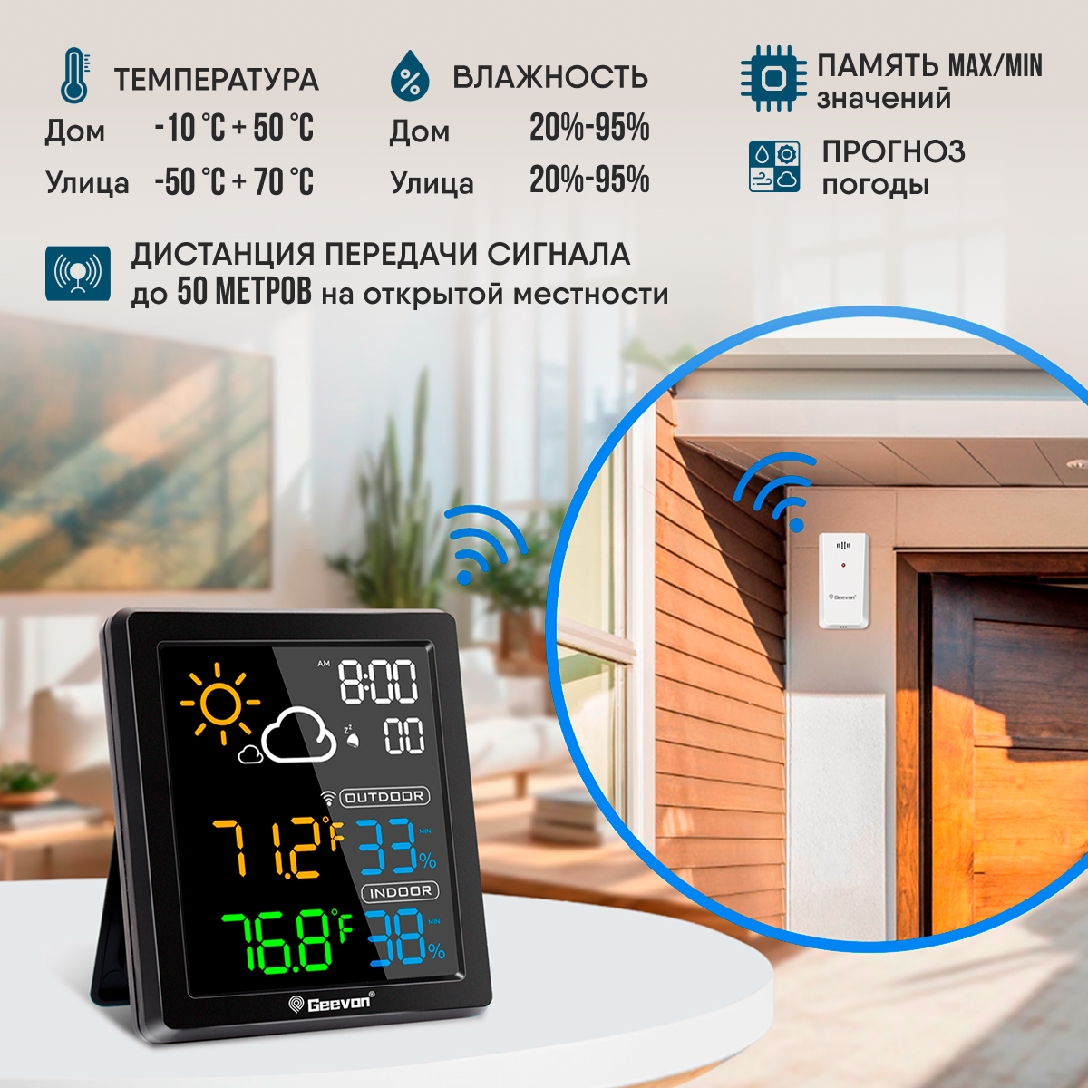 10 цен на Метеостанция GEEVON, с выносным беспроводным датчиком, будильник, часы