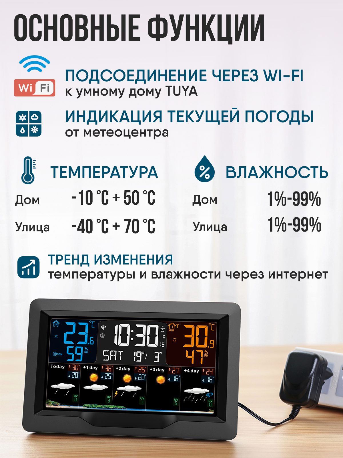 Метеостанция FanJu, с датчиком, Wi-Fi, цветной экран, настольная и настенная установка информация: