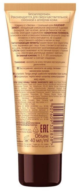 Тональный крем EVELINE CASHEMIRE EFFECT Теплый бежевый, 40мл