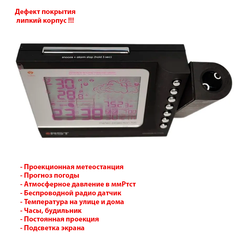 Проекционная погодная станция RST 705 с дистанционным терморадиодатчиком информация: