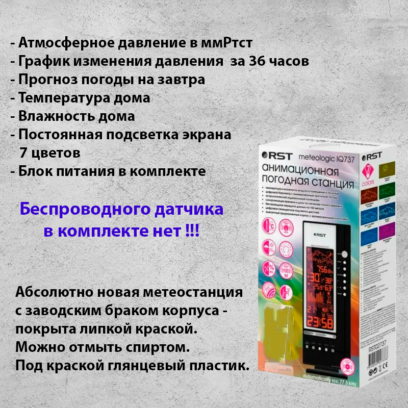 RST IQ737 Метеостанция с прогнозом погоды без радиодатчика информация: