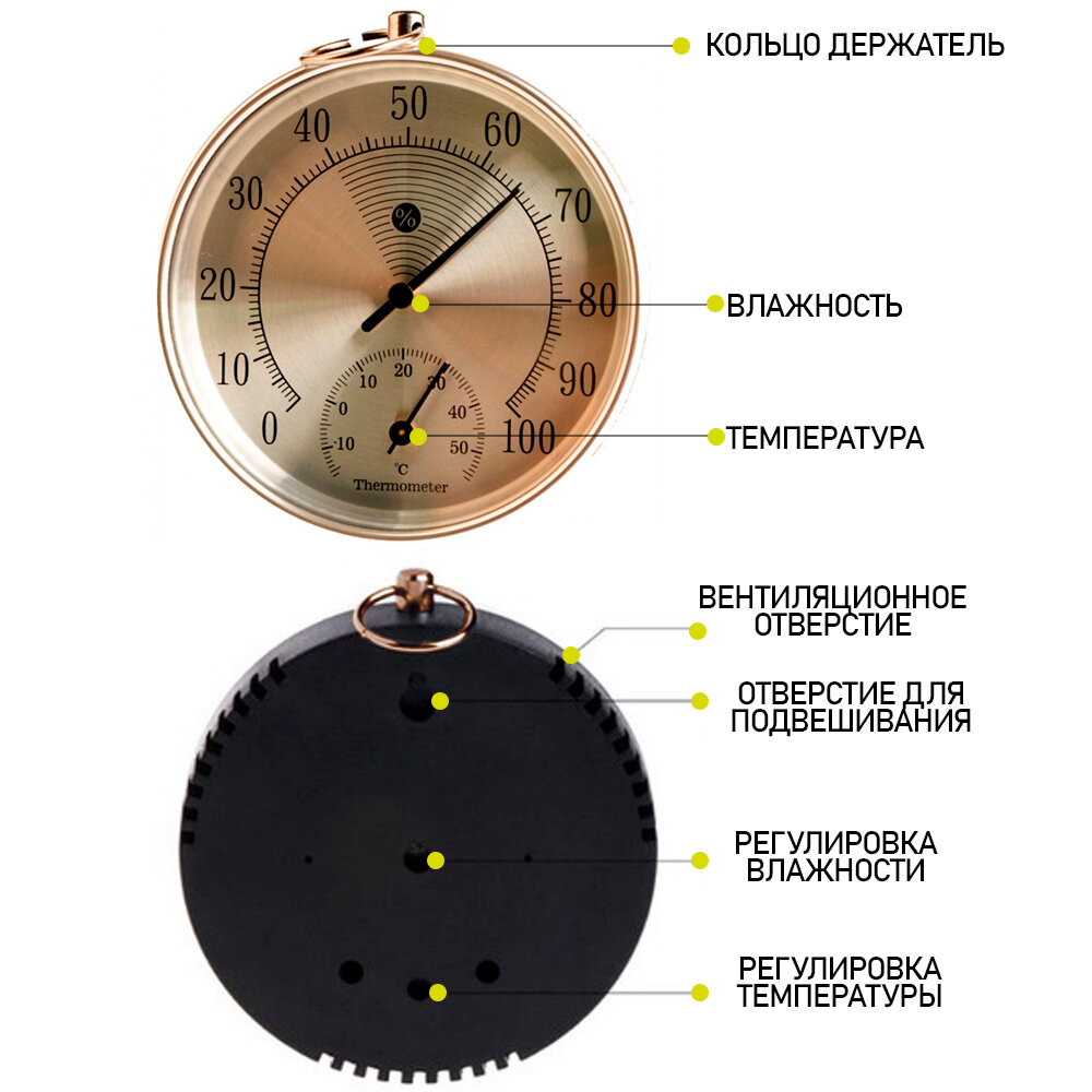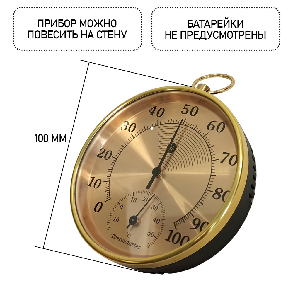 Отзывы на Термометр гигрометр механический TH 9100 G настенный, цвет- золотистый