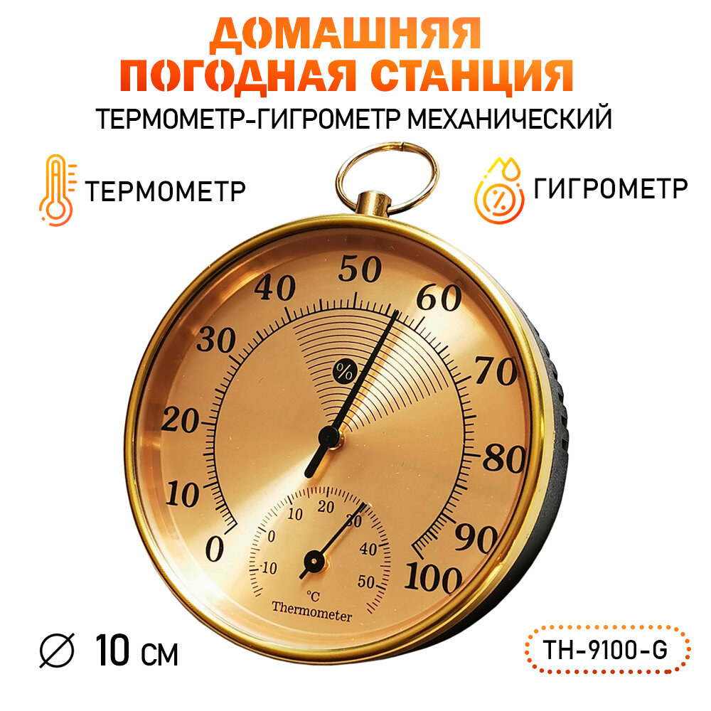 10 цен на Термометр гигрометр механический TH 9100 G настенный, цвет- золотистый