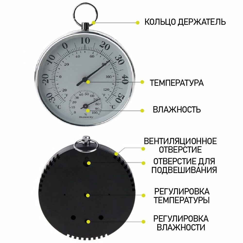 Термометр гигрометр механический TH 9100 SC цвет серебристый информация:
