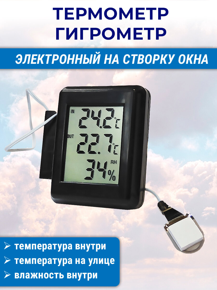 10 цен на Термометр оконный электронный с измерением влажности в помещении черный