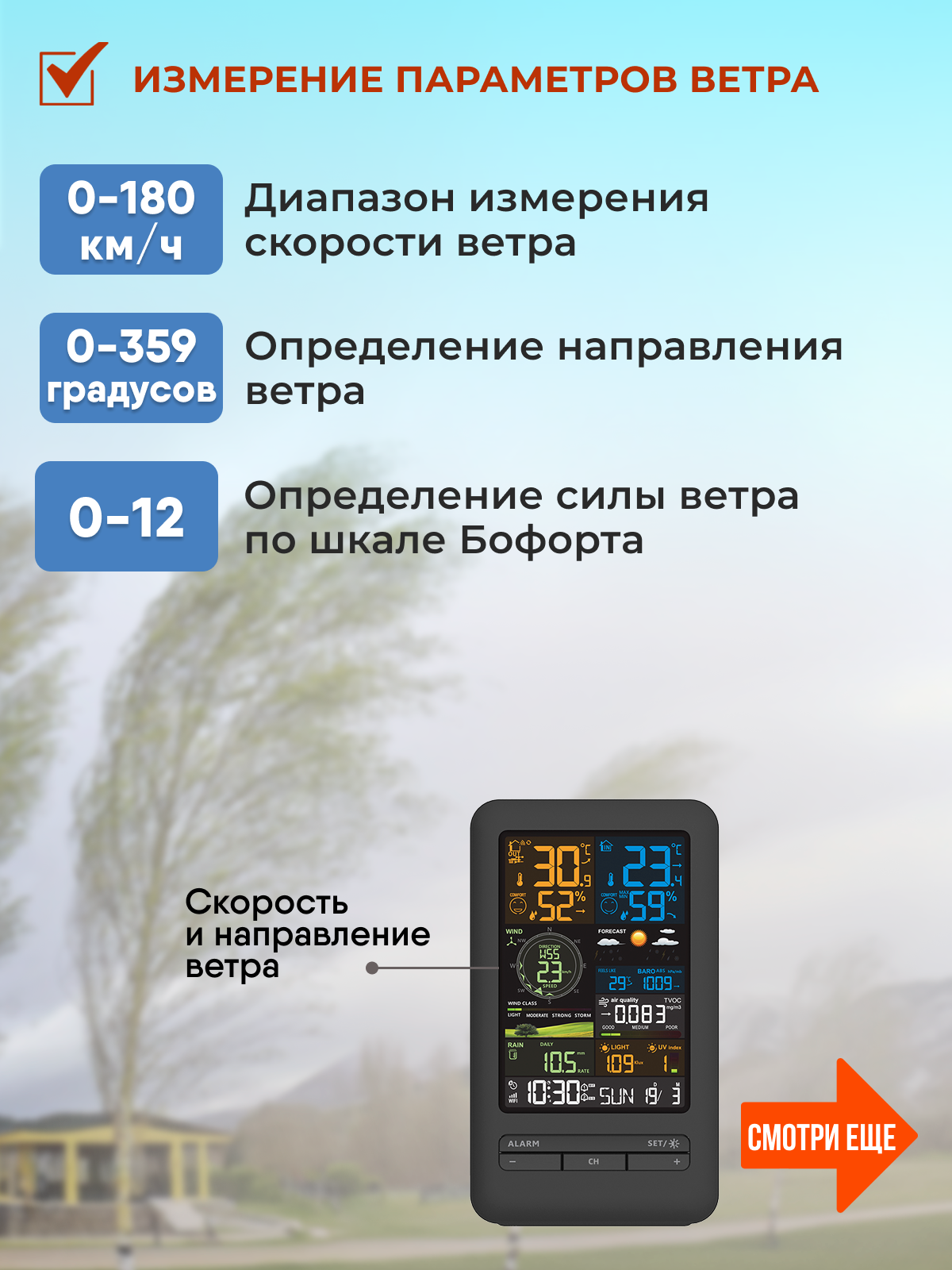 Дополнительная информация | Измерение количества осадков, скорость ветра, силу ветра. |