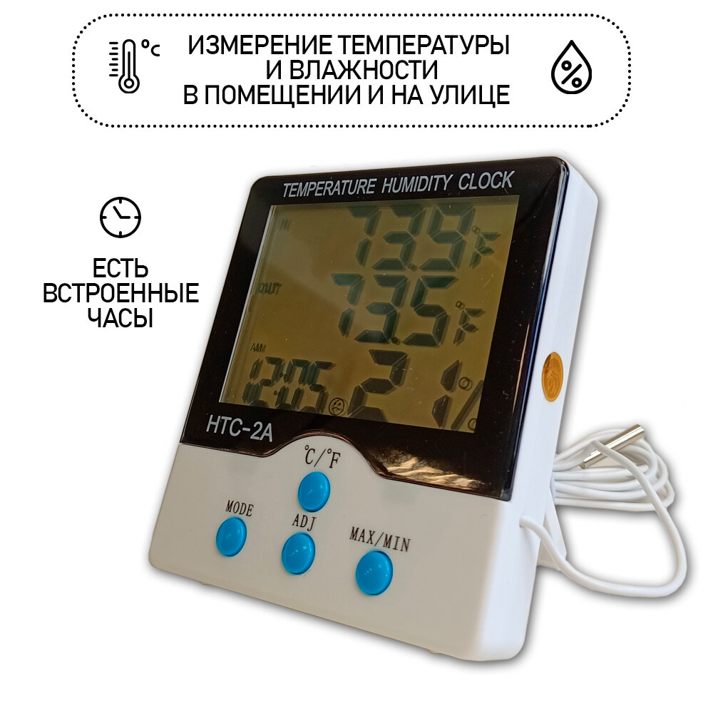 Отзывы на Термометр гигрометр цифровой HTC-2A электронный с выносным датчиком, цвет белый