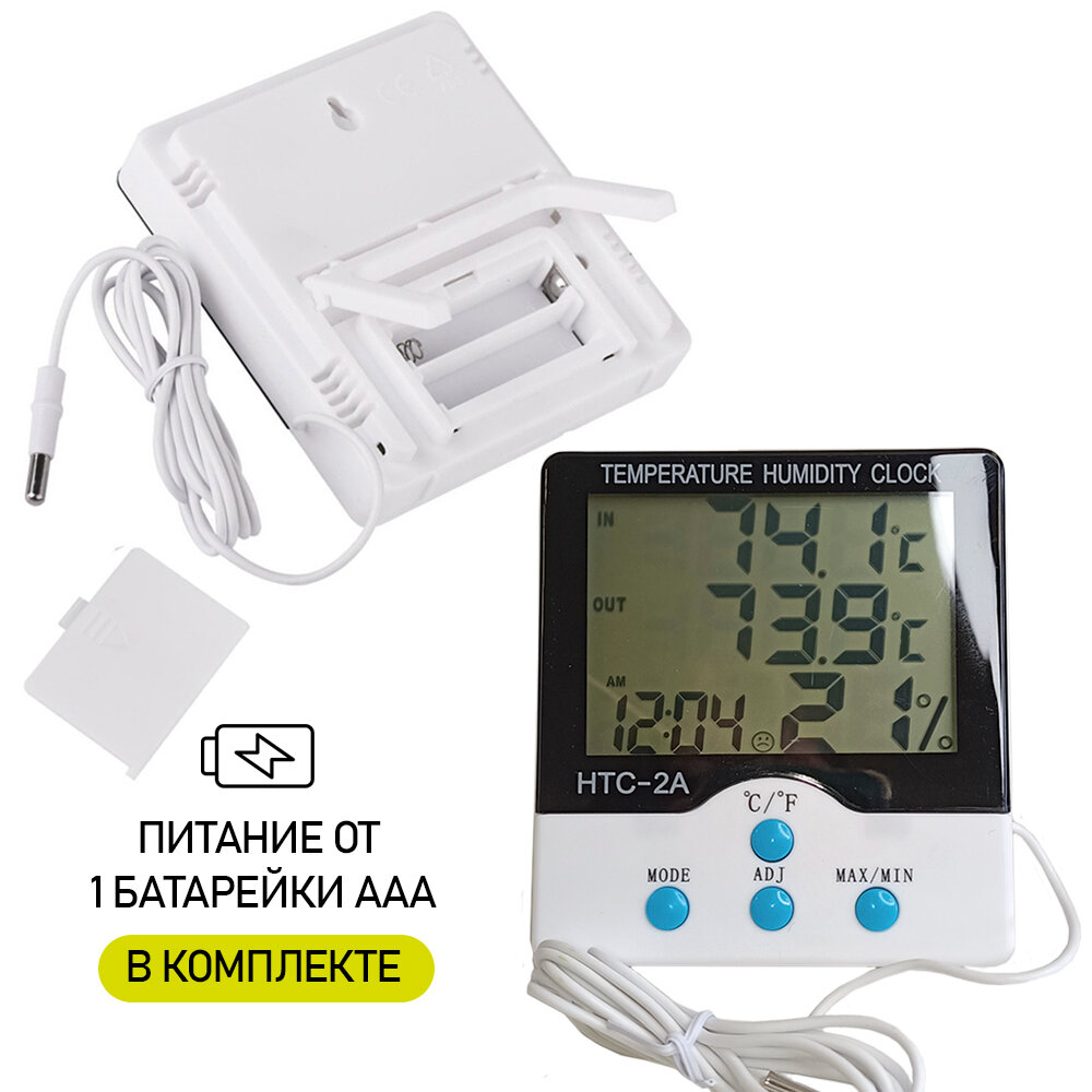 10 цен на Термометр гигрометр цифровой HTC-2A электронный с выносным датчиком, цвет белый