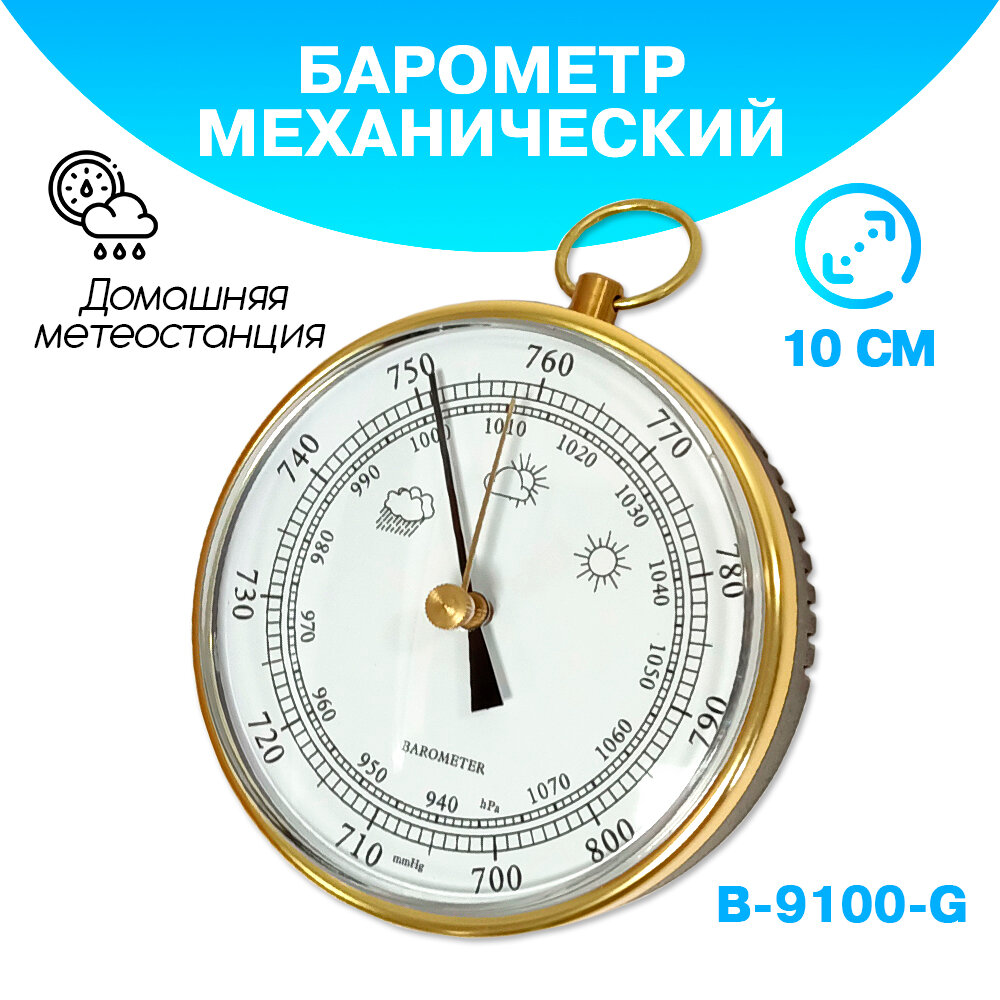 Барометр анероид B 9100 G бытовой, диаметр 100 мм, цвет - золотистый информация: