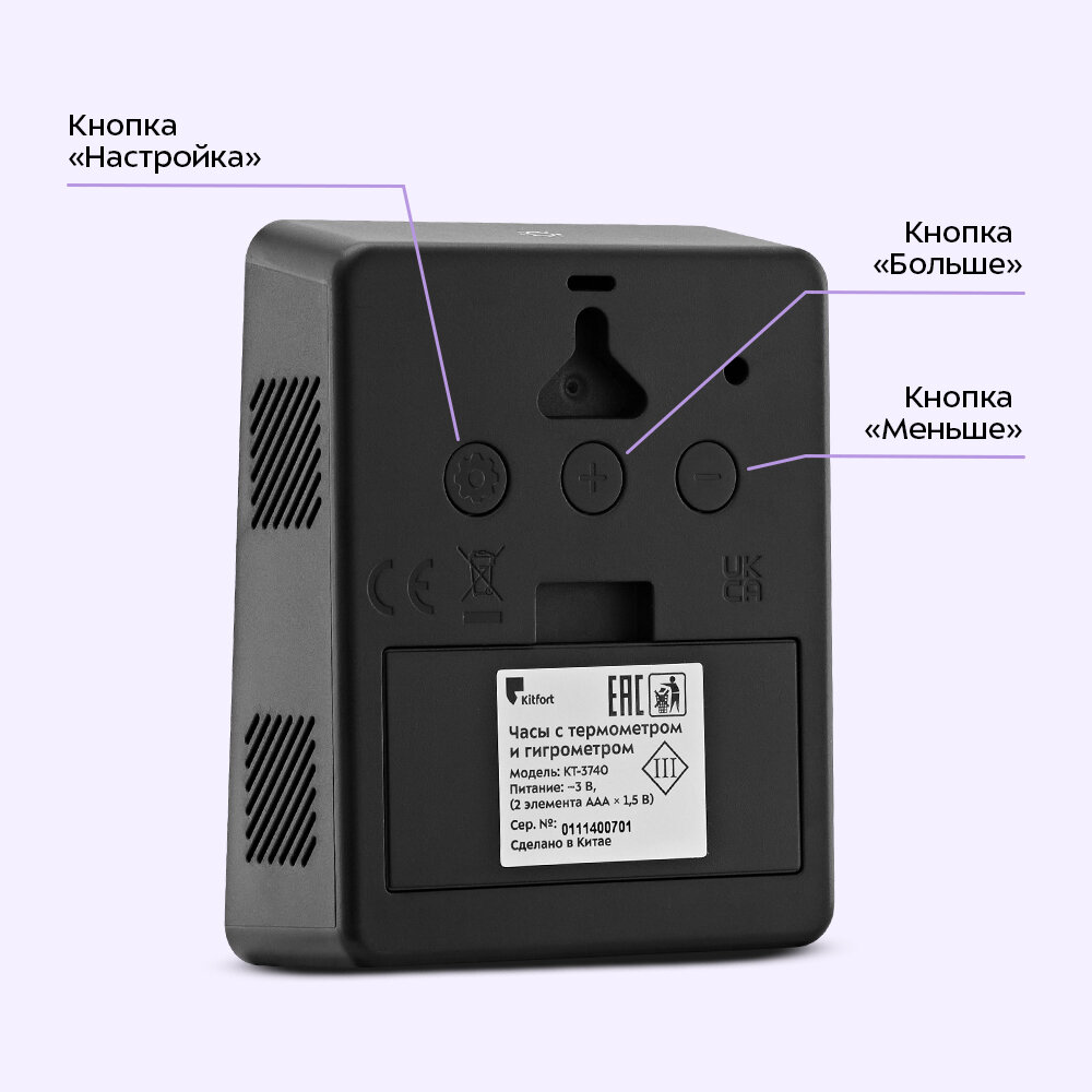 Часы с термометром и гигрометром Kitfort КТ-3740 информация: