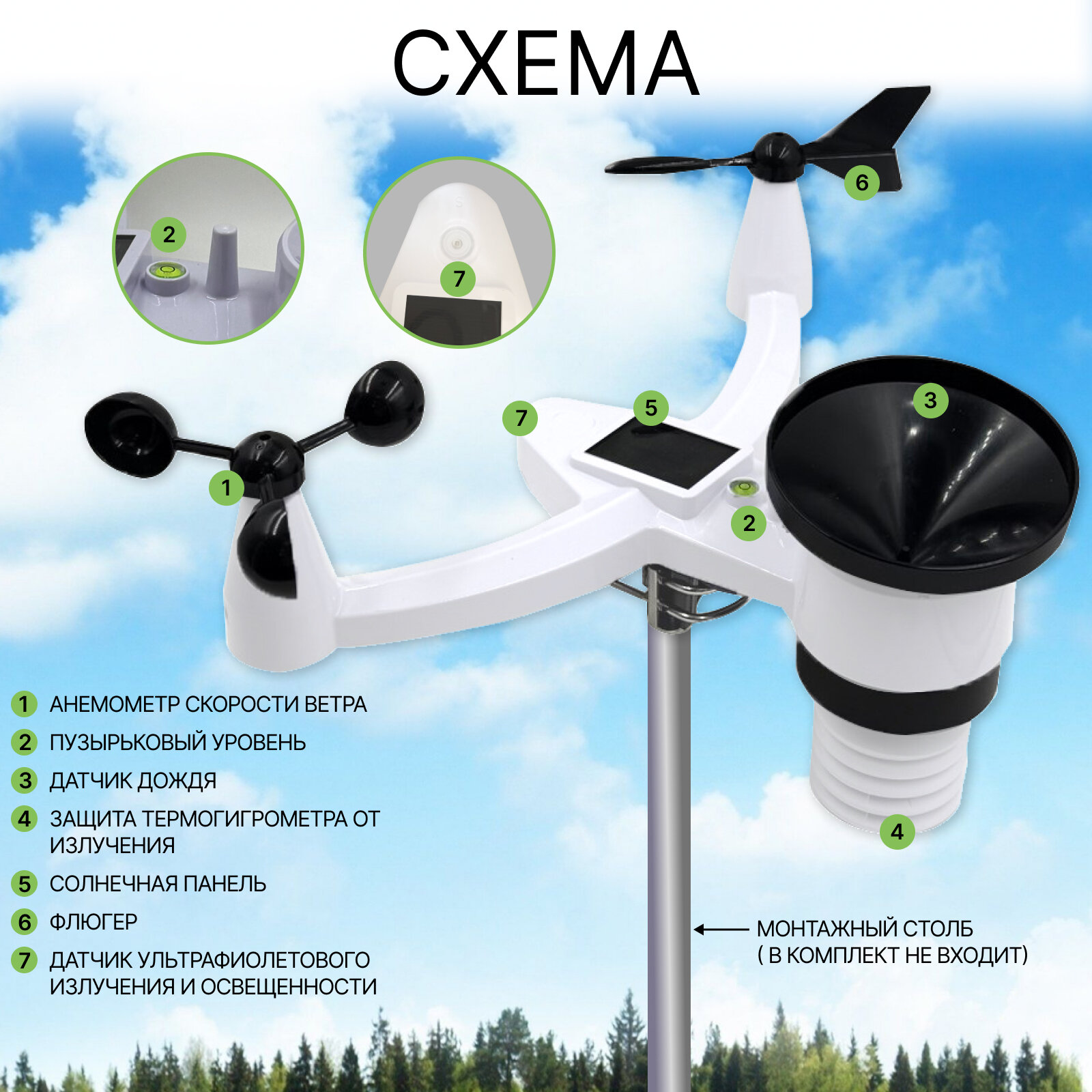 Метеостанция беспроводная профессиональная 7в1, погодная станция дальность 1500м, свет и уровень УФ 31 019 ₽