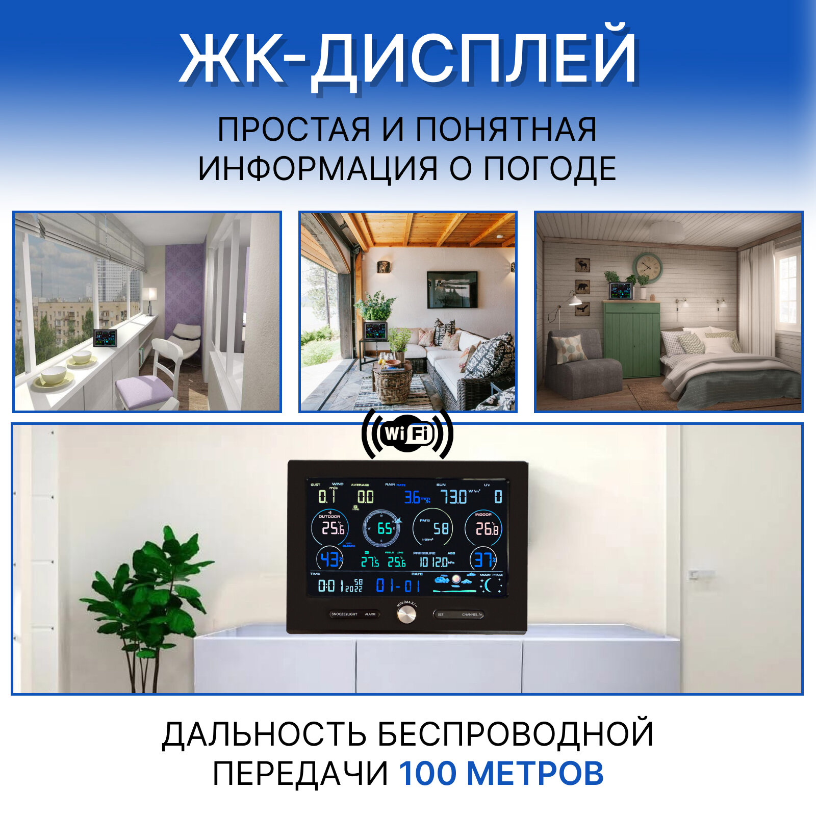 Метеостанция беспроводная профессиональная 7в1, погодная станция дальность 1500м, свет и уровень УФ 31 019 ₽