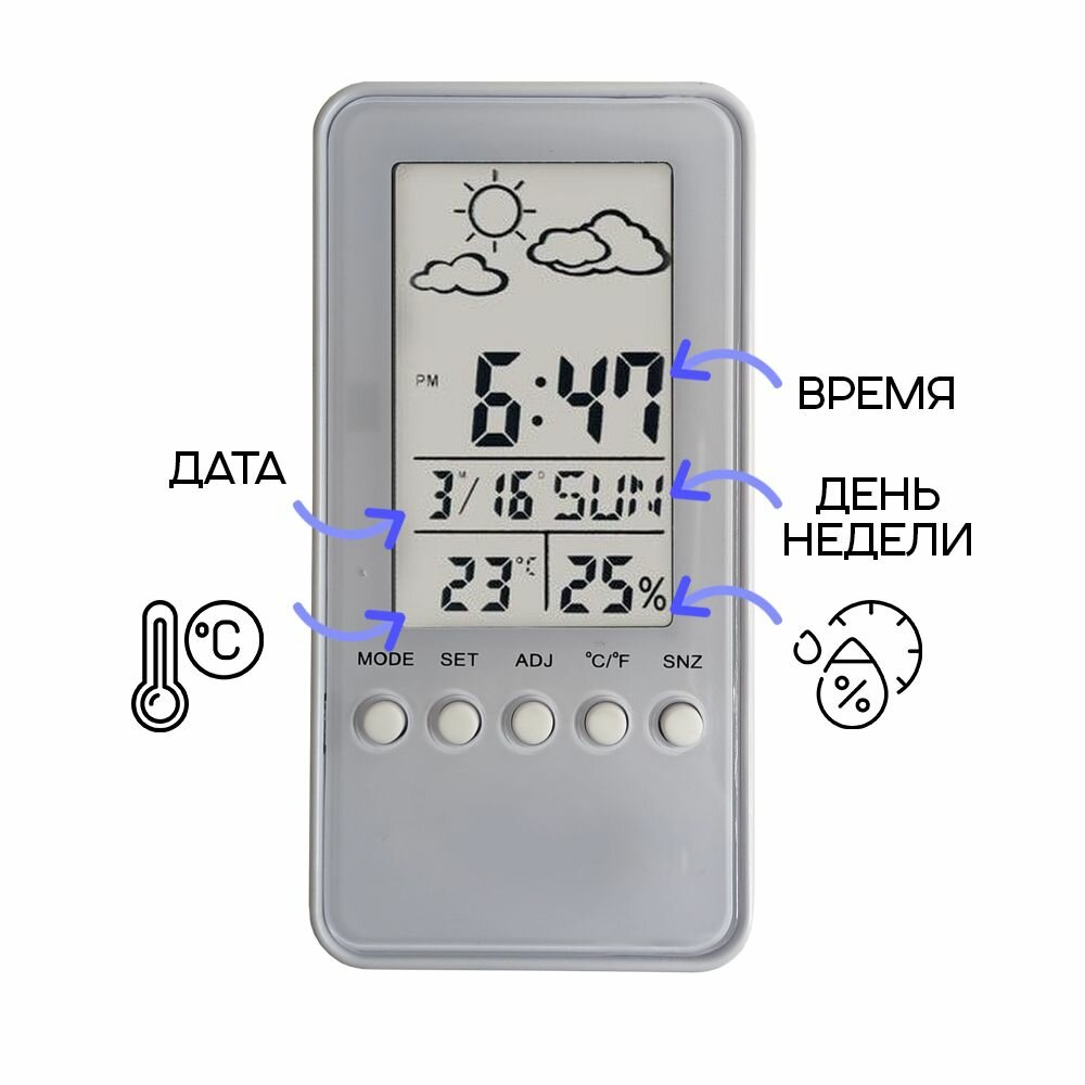 Термометр гигрометр электронный, домашняя метеостанция PF-S002A, без выносного датчика, цвет - белый информация: