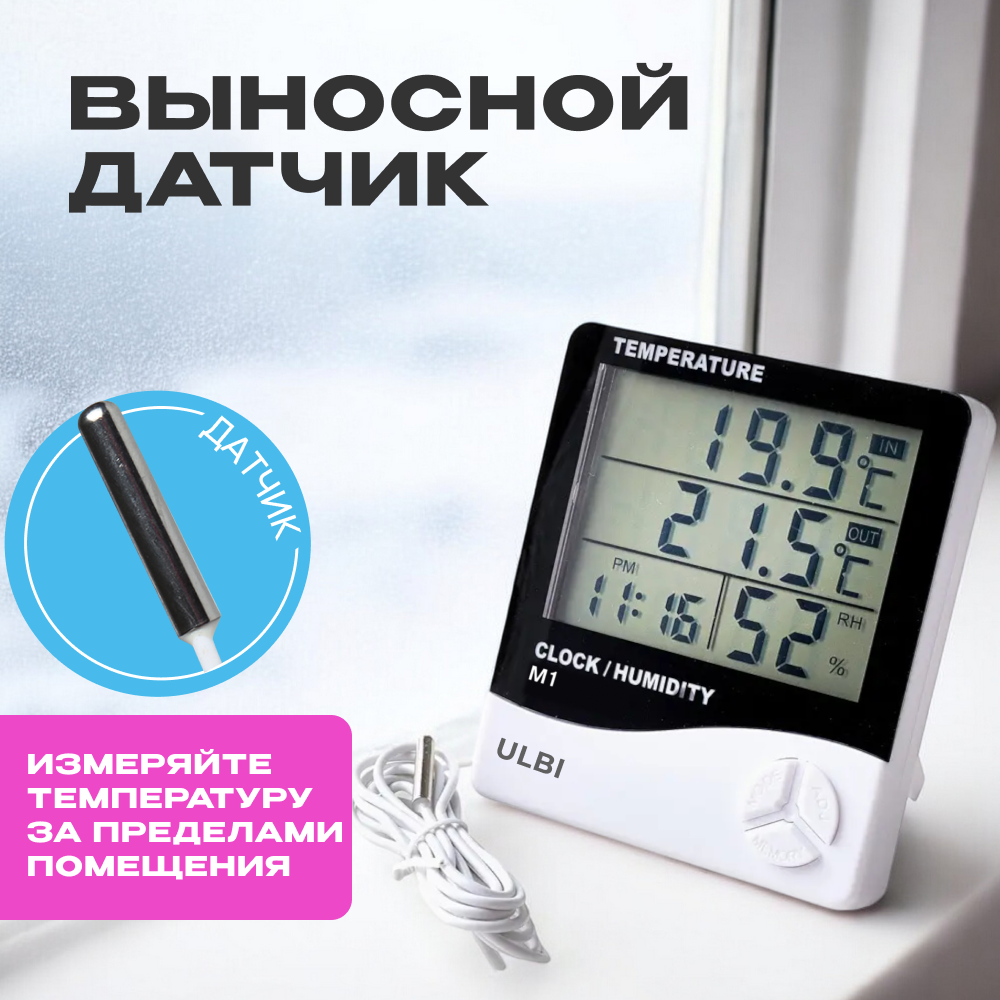 10 цен на Метеостанция с выносным датчиком термометр комнатный и уличный для измерения влажности и температуры ULBI M1