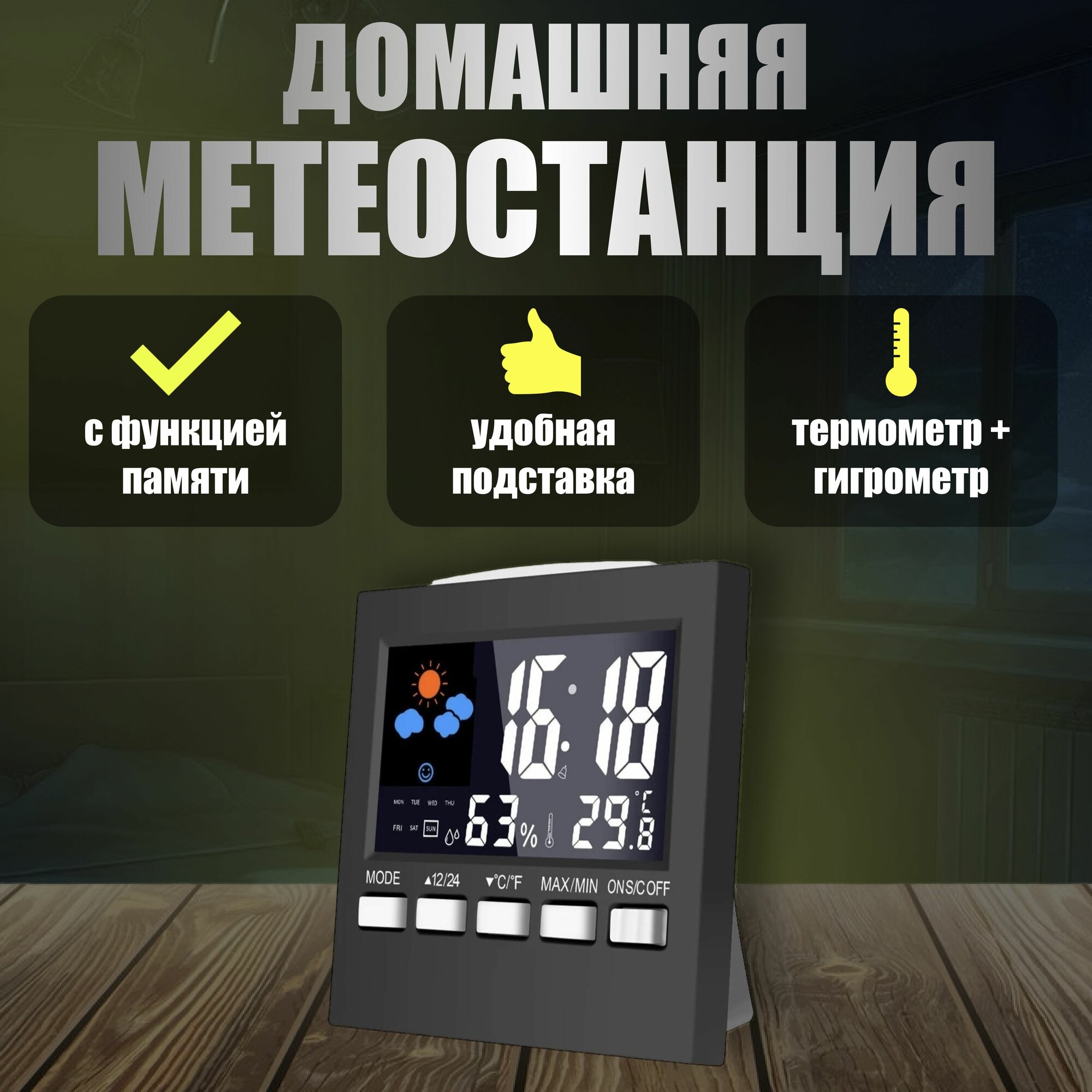 Отзывы на Домашняя метеостанция с датчиком влажности и температуры, часы с крупным дисплеем