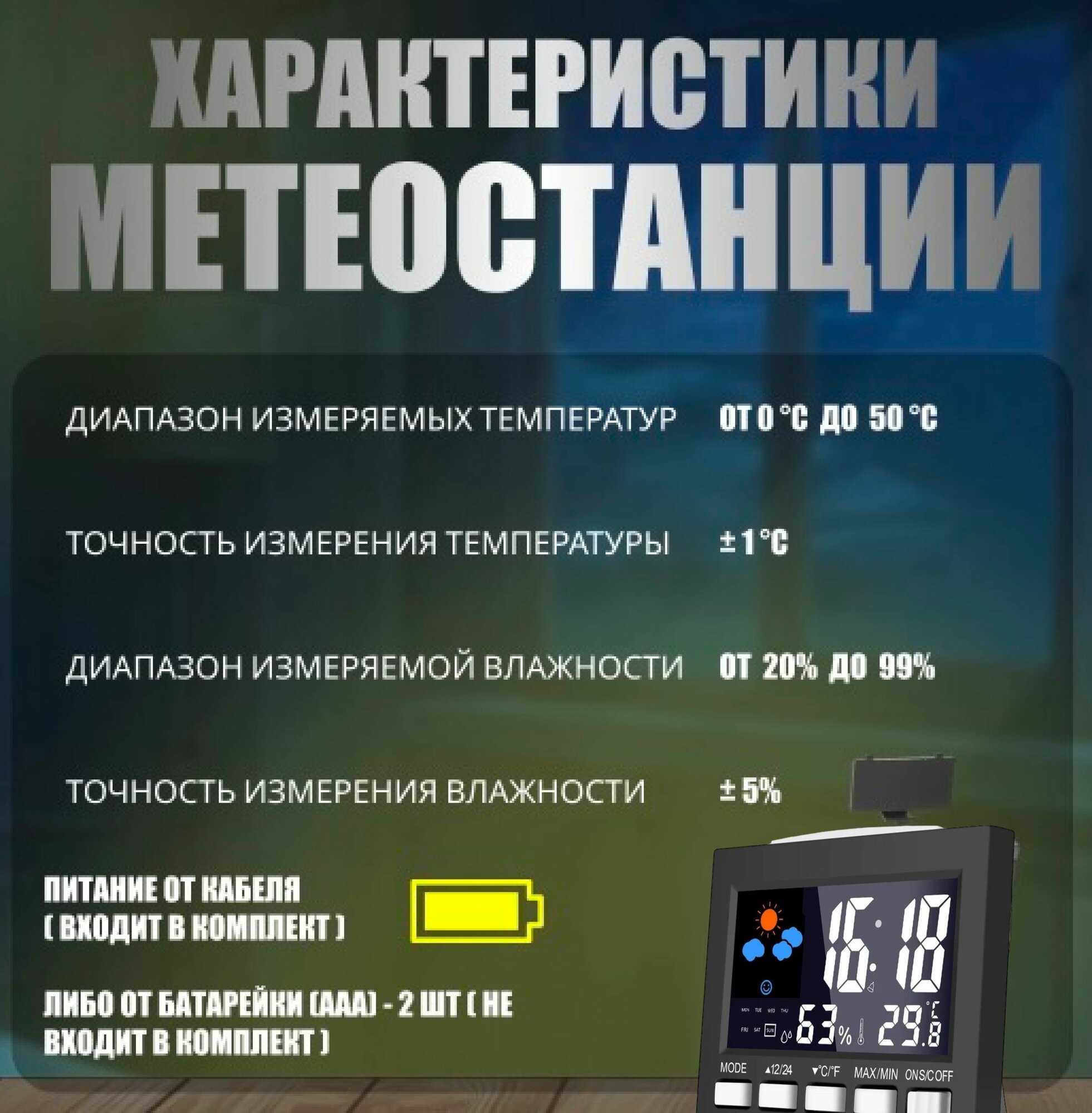 0 отзывов, средняя оценка 0. Чтобы купить «Домашняя метеостанция с датчиком влажности и температуры, часы с крупным дисплеем» по лучшей цене мы сканируем авито, алиэкспресс, маркет, озон, савеловский, плеер, горбушку, беру, официальные сайты и находим минимальную. Администрация не несет ответсвенность актуальность цен на Домашняя метеостанция с датчиком влажности и температуры, часы с крупным дисплеем, более подробно узнавайте на сайте магазина.