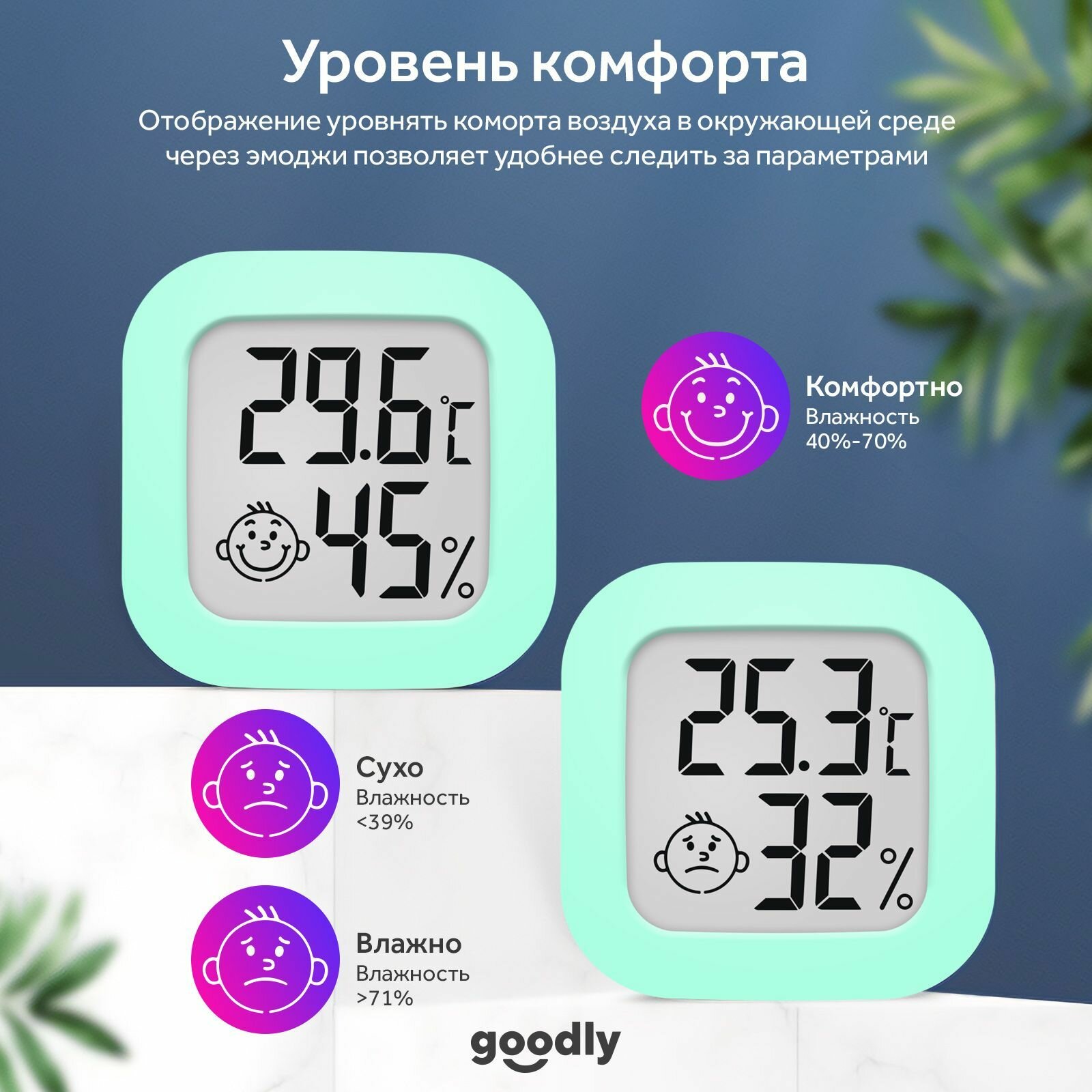 Гигрометр-термометр Goodly Hygrometer G-07, домашняя метеостанция, измерение влажности и температуры, бирюзовый информация: