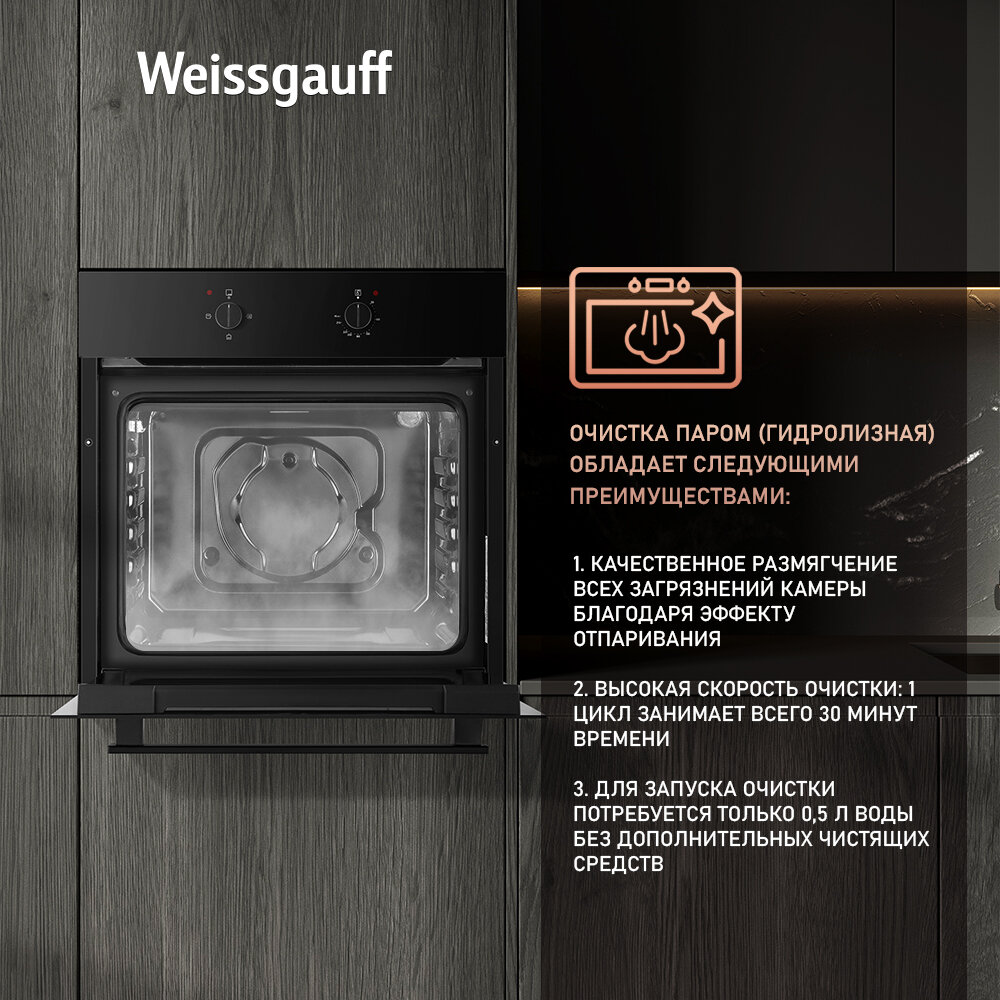 Weissgauff духовой шкаф EOV 19 MBV с Грилем и Конвекцией, Объем 65 литров, 8 функций, Эмаль SMART CLEAN, 3 года гарантии