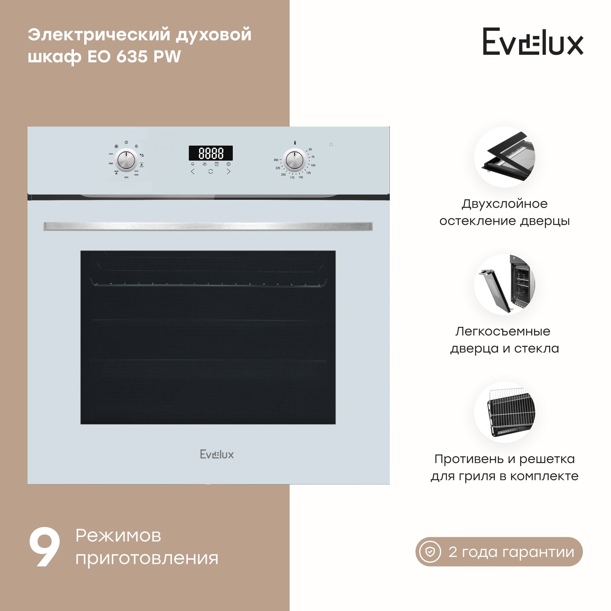 Духовой шкаф Evelux EO 635 PW электрический, ширина 60 см, цвет белый информация: