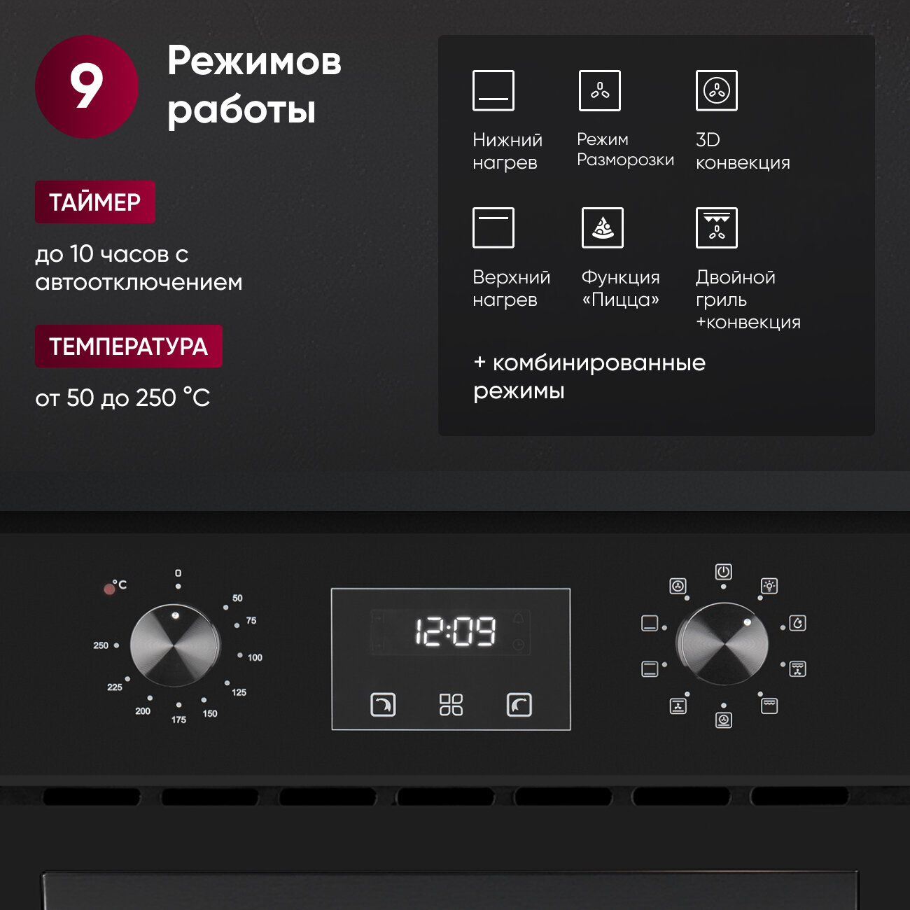 Электрический духовой шкаф DEXP "1YLO45BB", черный, откидная дверца