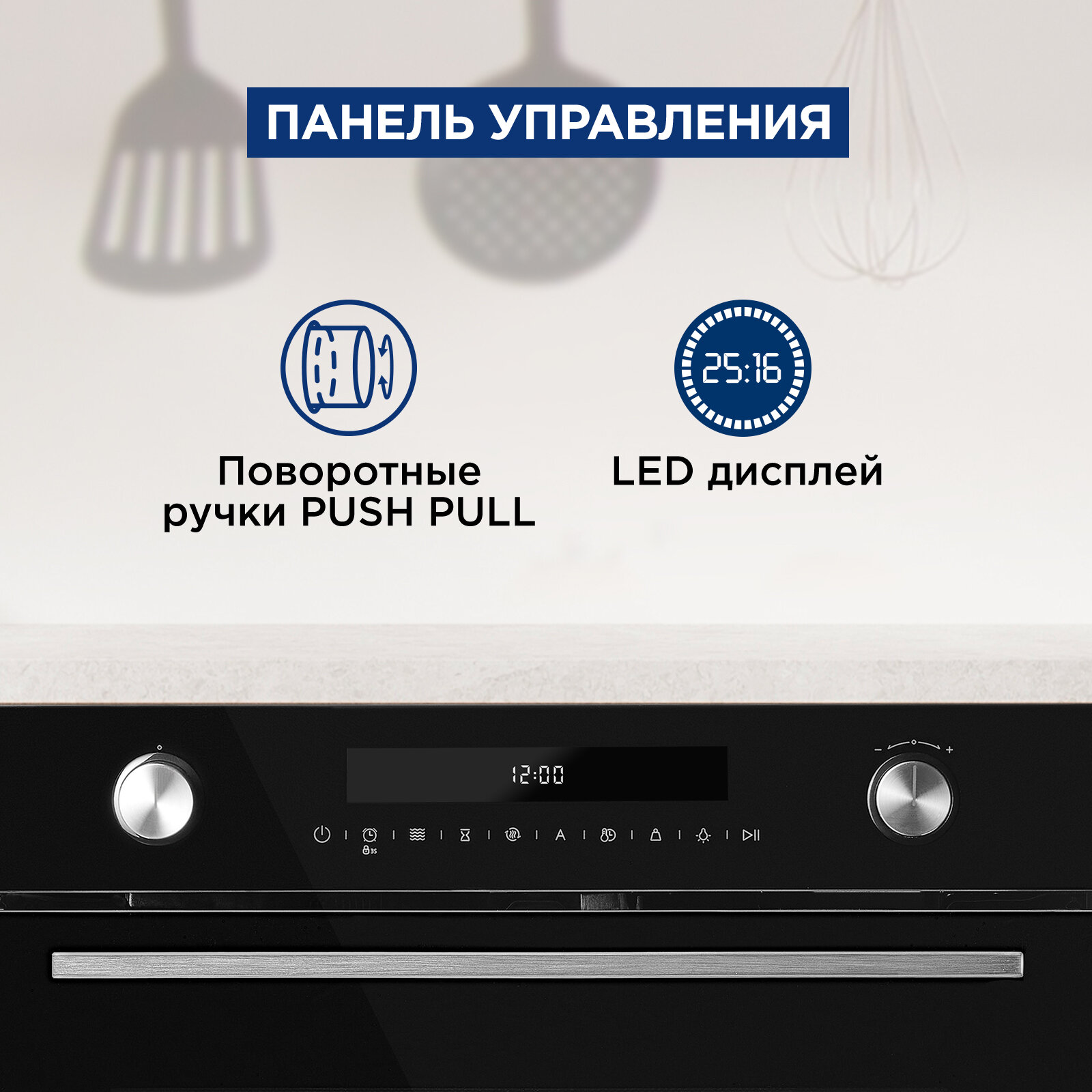 Электрический духовой шкаф DEXP "1YLO45BB", черный, откидная дверца