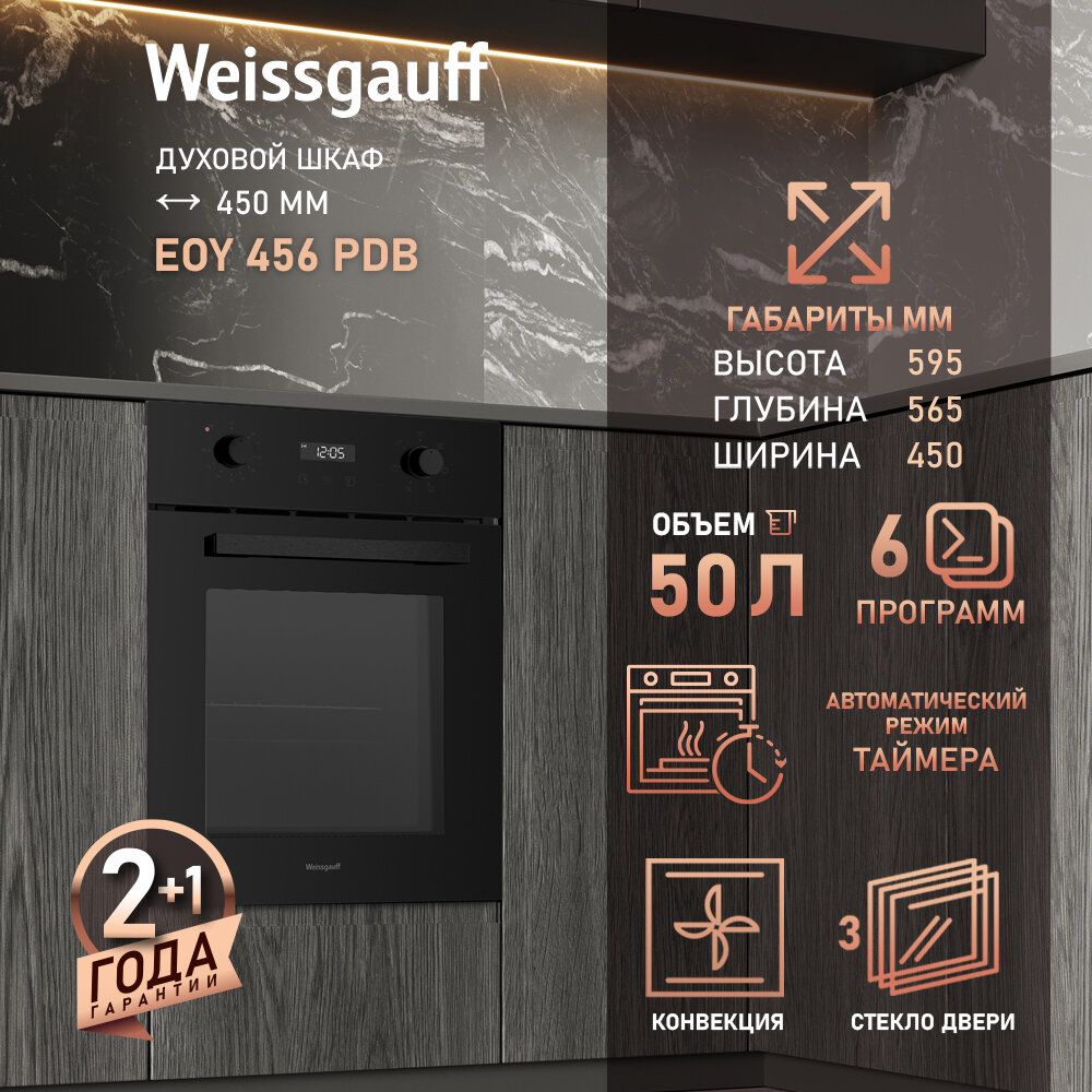 10 цен на Духовой шкаф Weissgauff EOY 456 PDB, Утапливаемые рукоятки PIPO