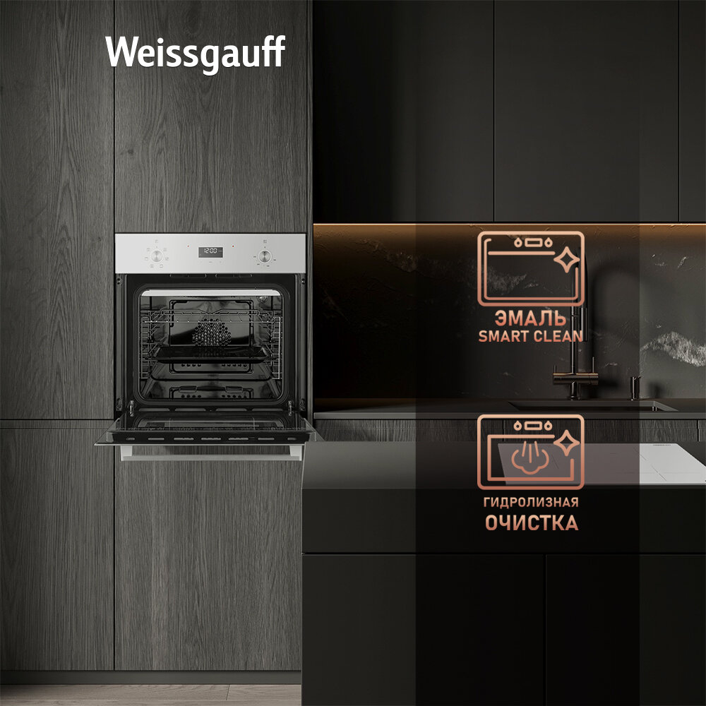 Weissgauff духовой шкаф EOV 19 MBV с Грилем и Конвекцией, Объем 65 литров, 8 функций, Эмаль SMART CLEAN, 3 года гарантии