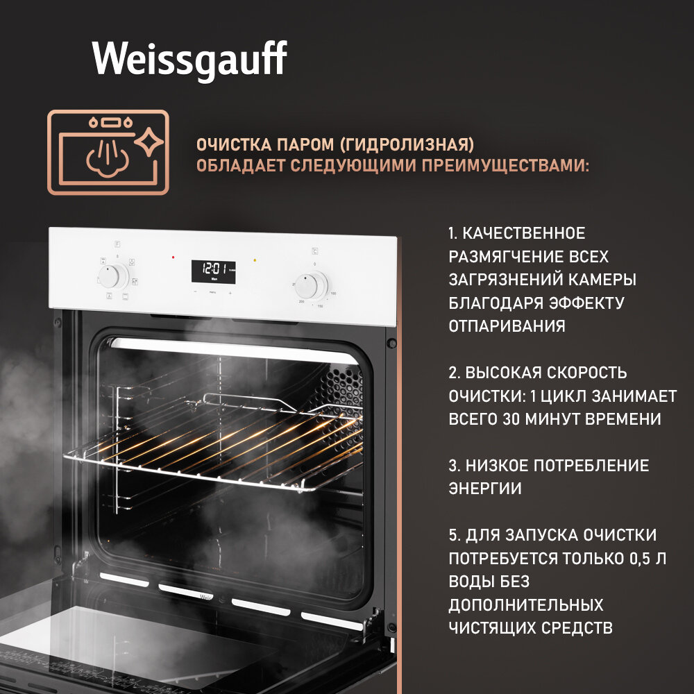 Отзывы на Электрический духовой шкаф Weissgauff EOV 672 SW с конвекцией и грилем, объем XL 64 л, гриль и конвекция, 3 года гарантии