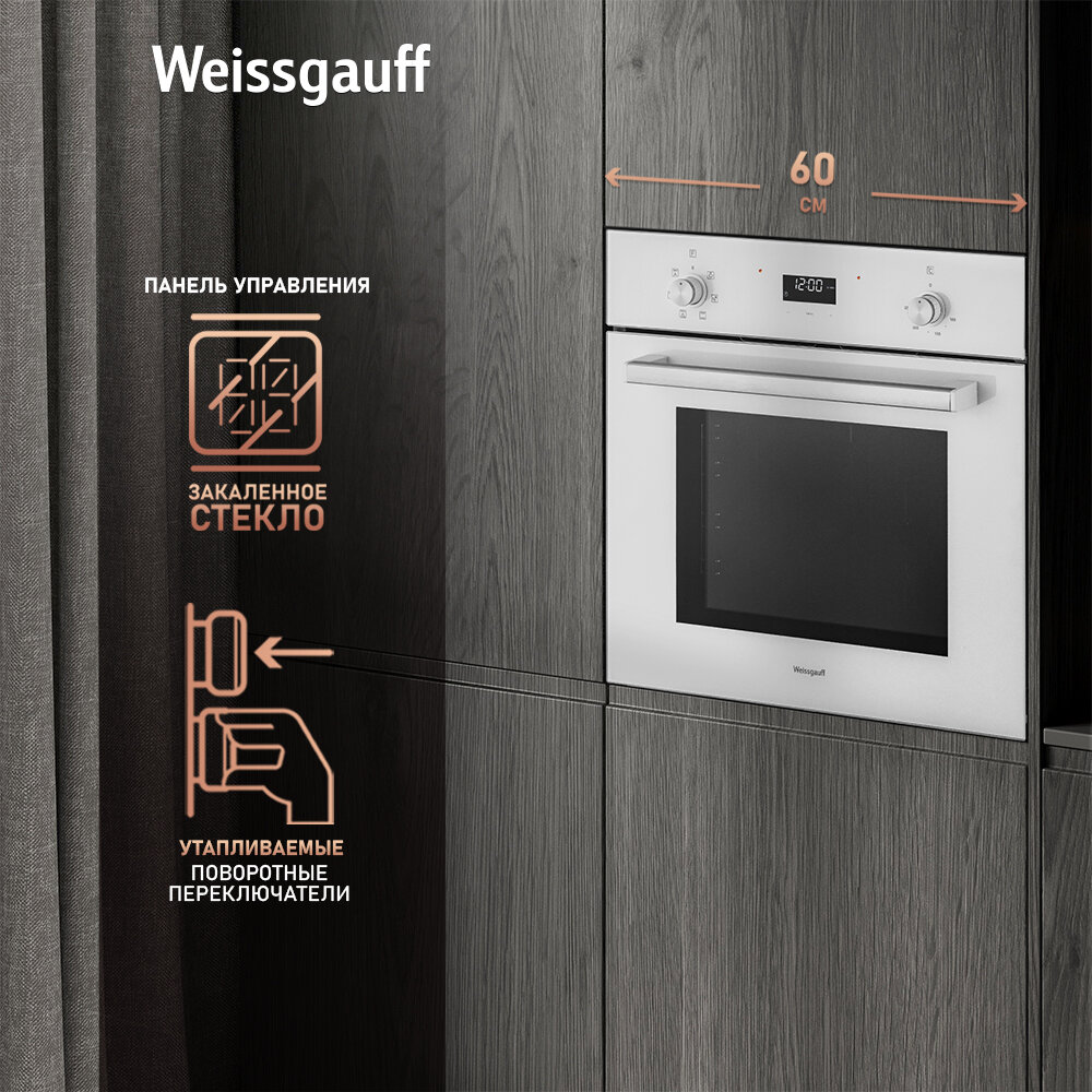 10 цен на Электрический духовой шкаф Weissgauff EOV 672 SW с конвекцией и грилем, объем XL 64 л, гриль и конвекция, 3 года гарантии