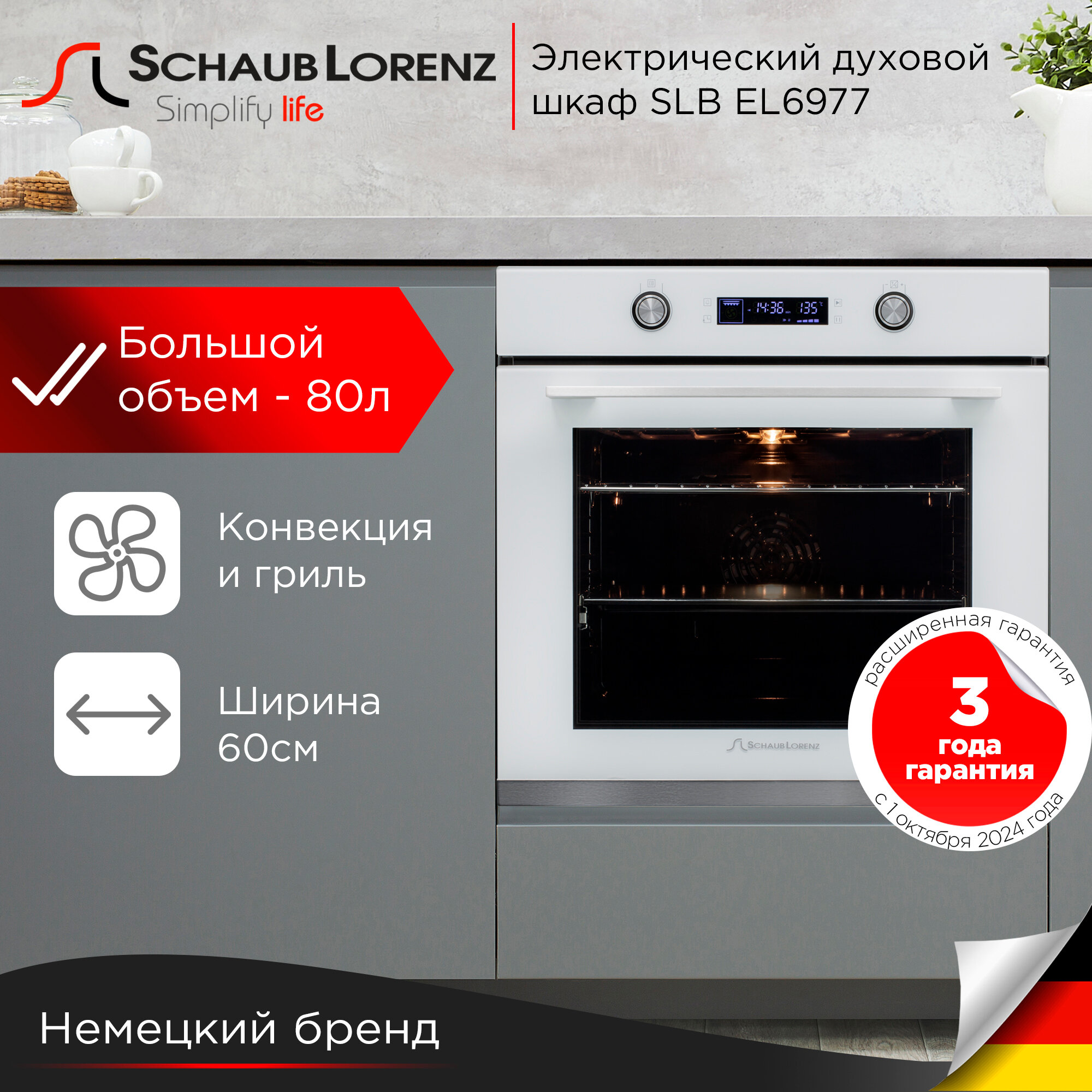 Отзывы на Духовой шкаф электрический встраиваемый Schaub Lorenz SLB EL6977, 80л, гриль, конвекция, размораживание.
