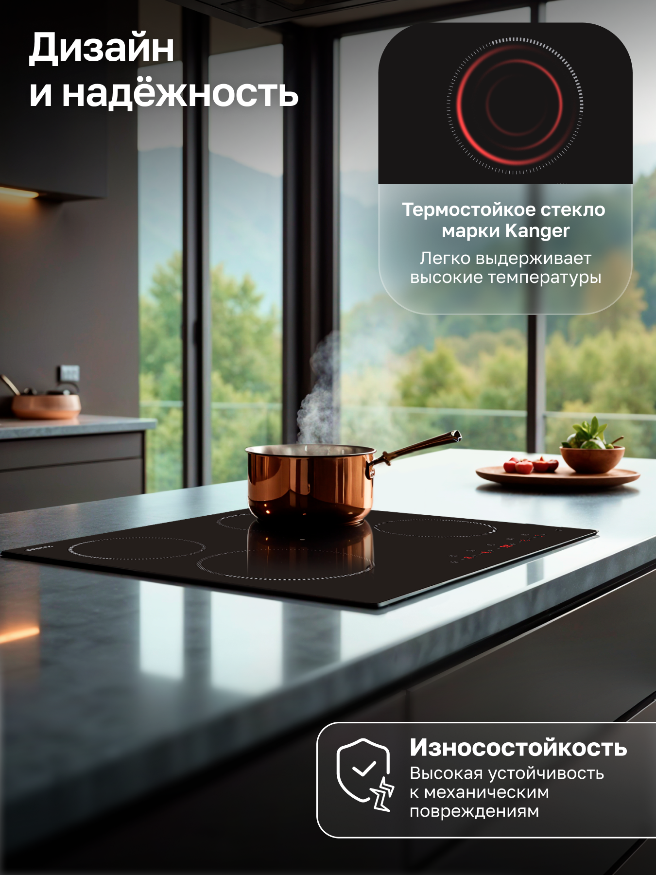 Варочная панель электрическая 4 конфорки встраиваемая GARTZ HET610B QuadroCook, ширина 60см, стеклокерамическая, черная информация: