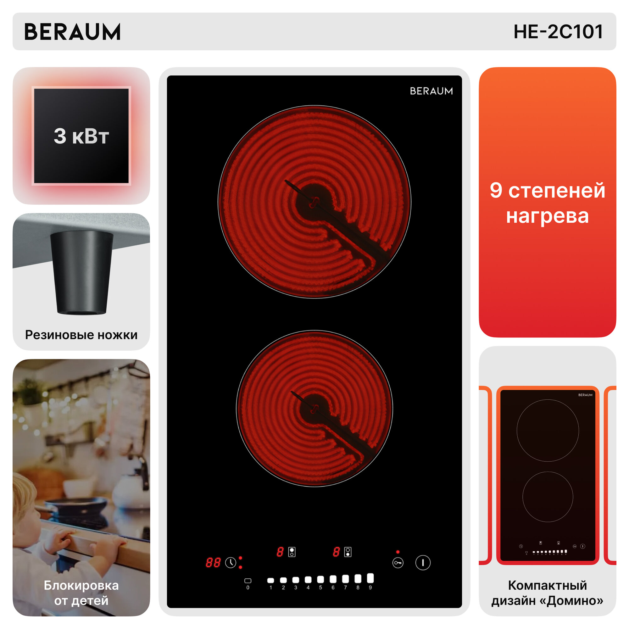 Встраиваемая электрическая варочная панель Beraum HE-2C101 информация:
