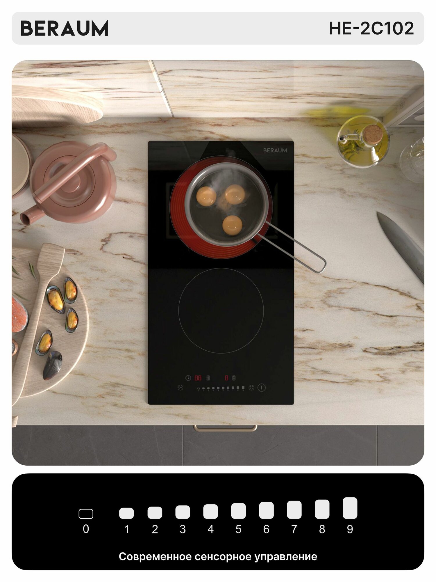 Электрическая варочная панель HE-2C102, 2 конфорки, 3200 Вт, двухконтурная зона нагрева, черный информация:
