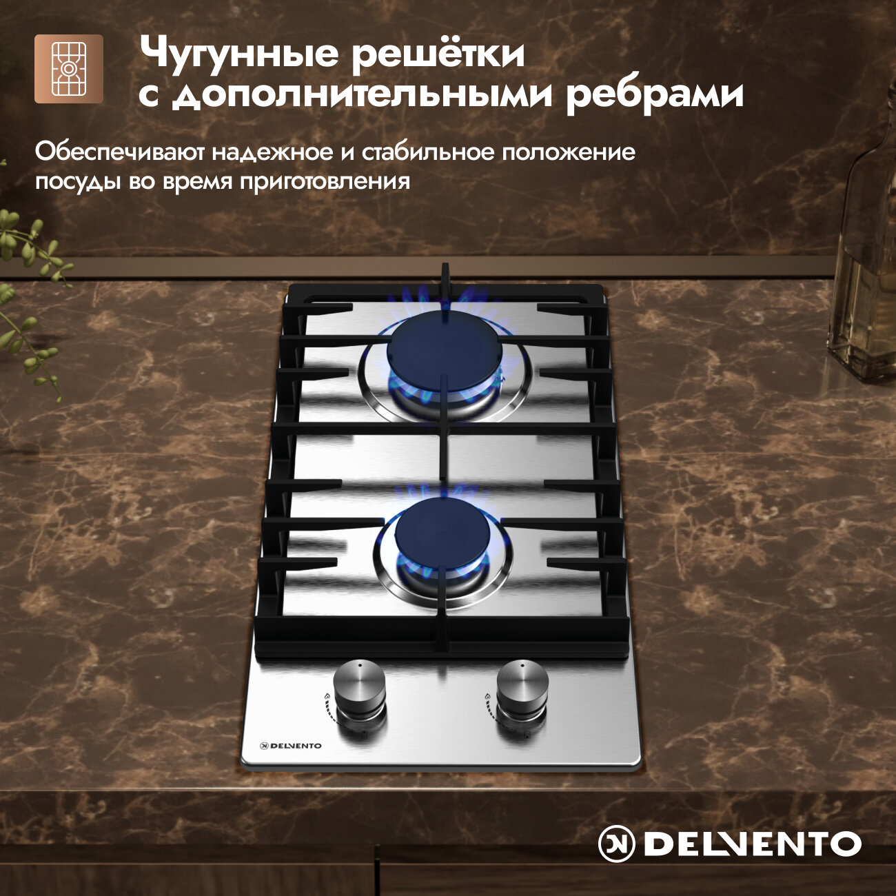 Встраиваемая газовая варочная панель DELVENTO V30V20M100, нержавеющая сталь информация:
