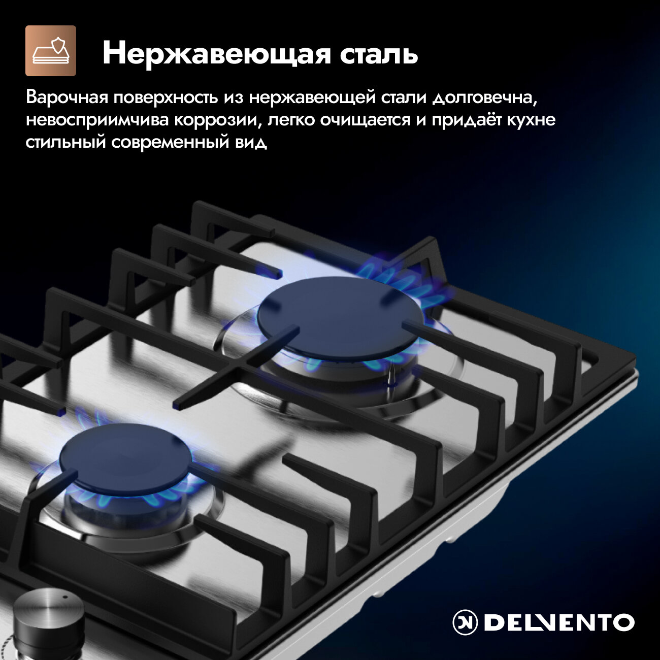 Отзывы на Встраиваемая газовая варочная панель DELVENTO V30V20M100, нержавеющая сталь