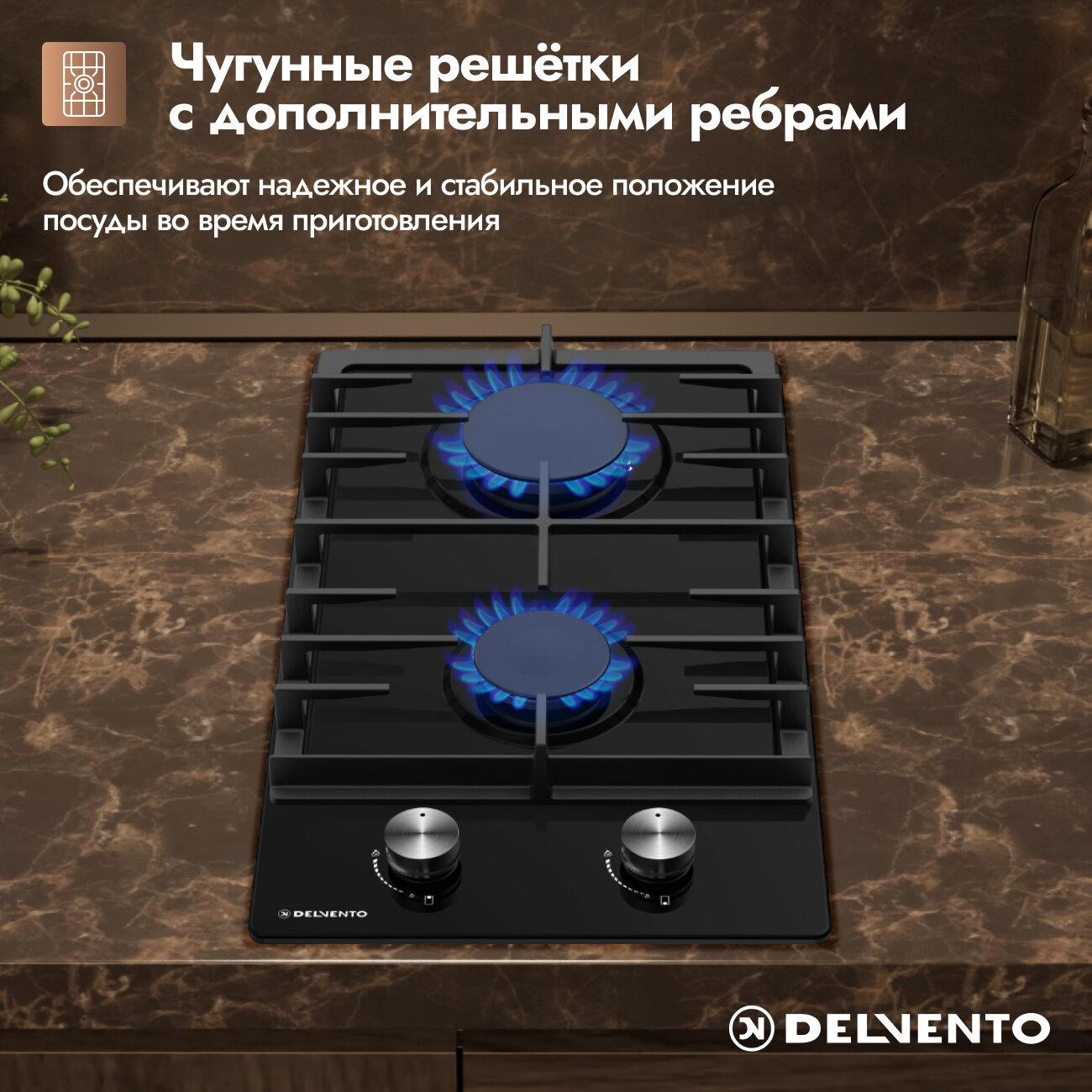 Встраиваемая газовая варочная панель DELVENTO V30N20S100, черное стекло 8 982 ₽