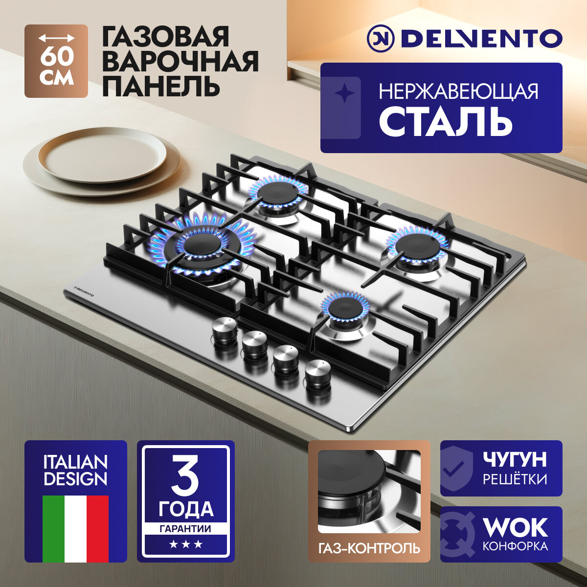Встраиваемая газовая варочная панель DELVENTO V30V20M100, нержавеющая сталь 7 500 ₽