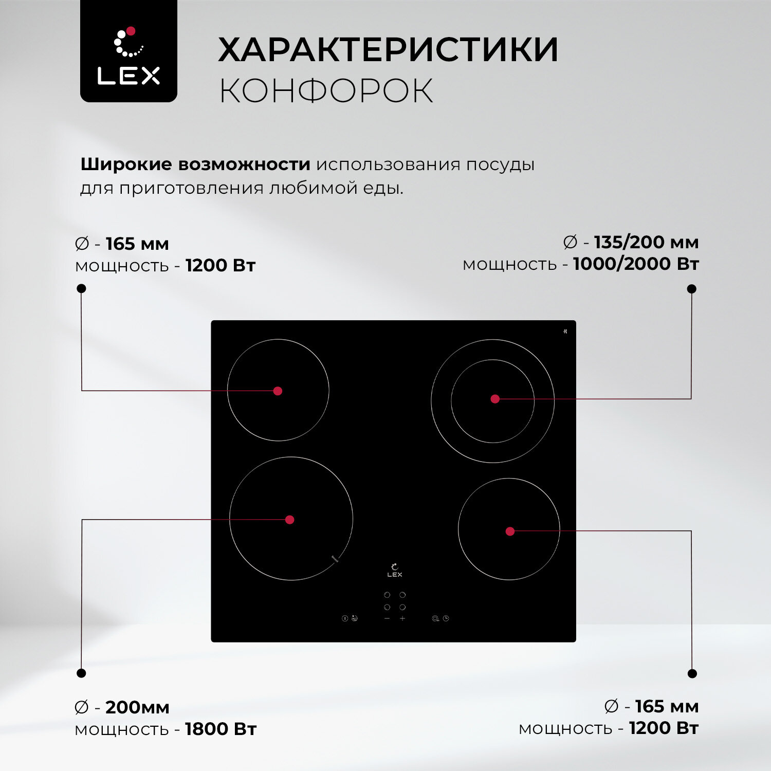 Отзывы на Электрическая варочная поверхность, встраиваемая LEX HH 6041 BL, четырехконфорочная, сенсорное управление, двухконтурная конфорка