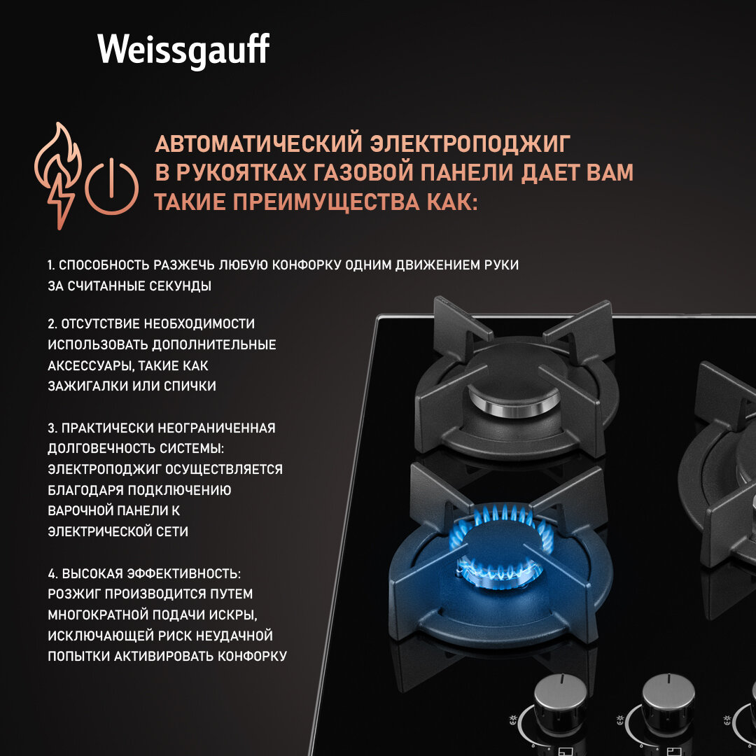 Варочная панель Weissgauff HG 453 BGV, Рукоятки Hi-Tech, Автоматический электроподжиг