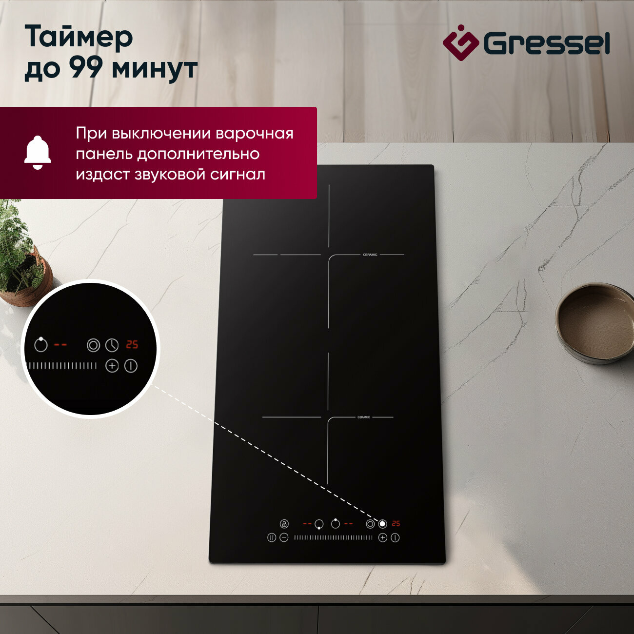 Встраиваемая индукционная варочная панель GRESSEL U60I74S001, 60 см, 7000Вт, Slider control 12 971 ₽