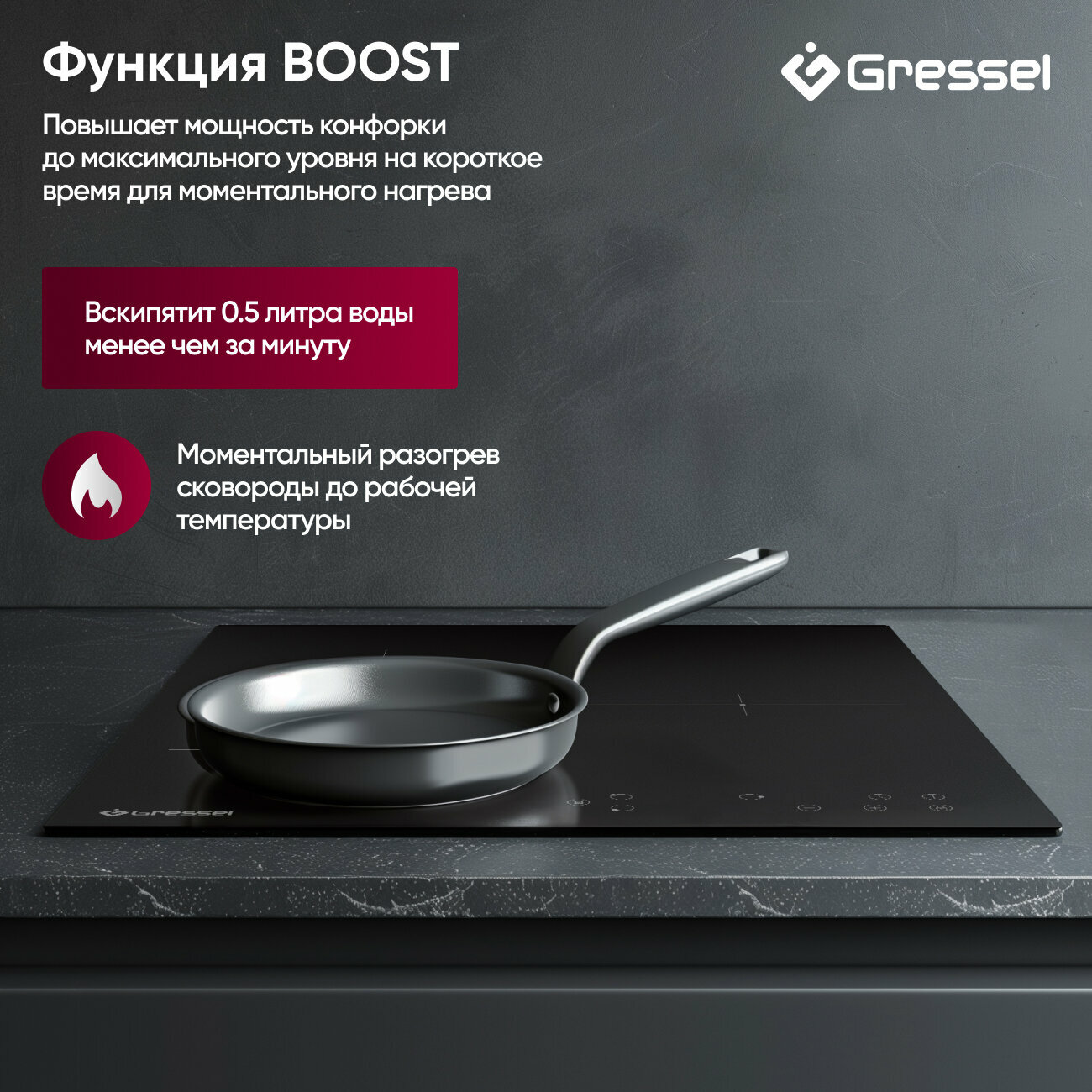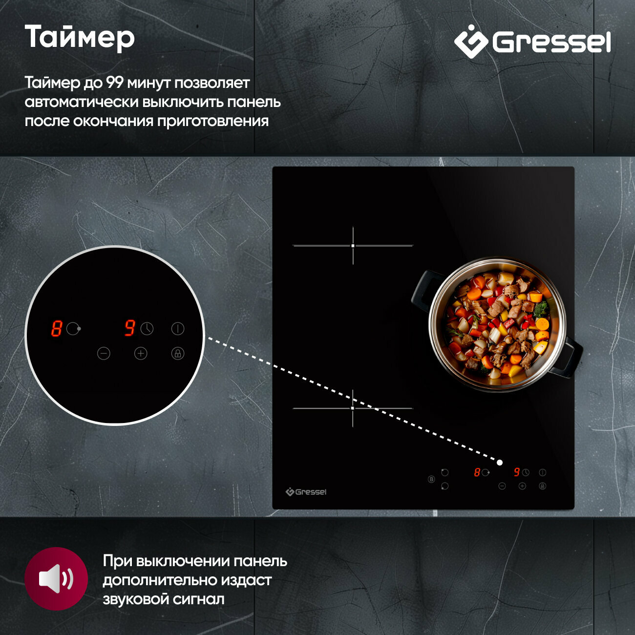 Встраиваемая индукционная варочная панель GRESSEL U45I73S000, 45 см, 5500Вт, Touch control информация: