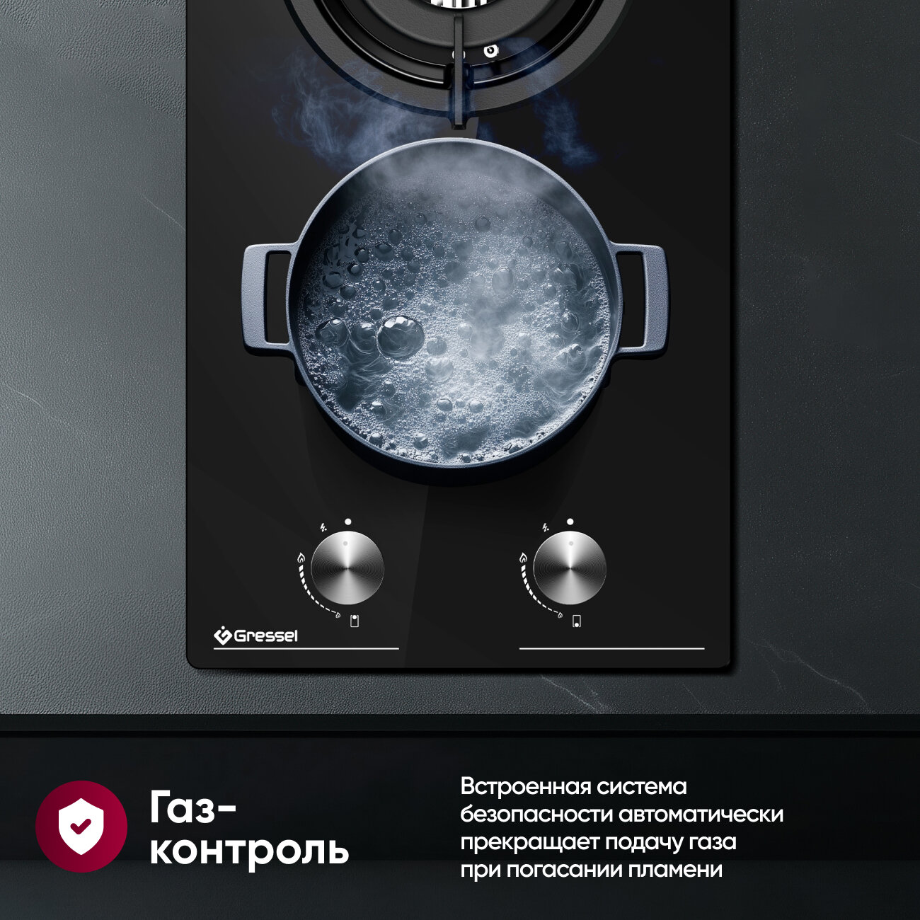 Газовая варочная панель Gressel U30V20M000 30 см, нержавеющая сталь, автоматический розжиг, газ-контроль, чугун решетки 8 706 ₽